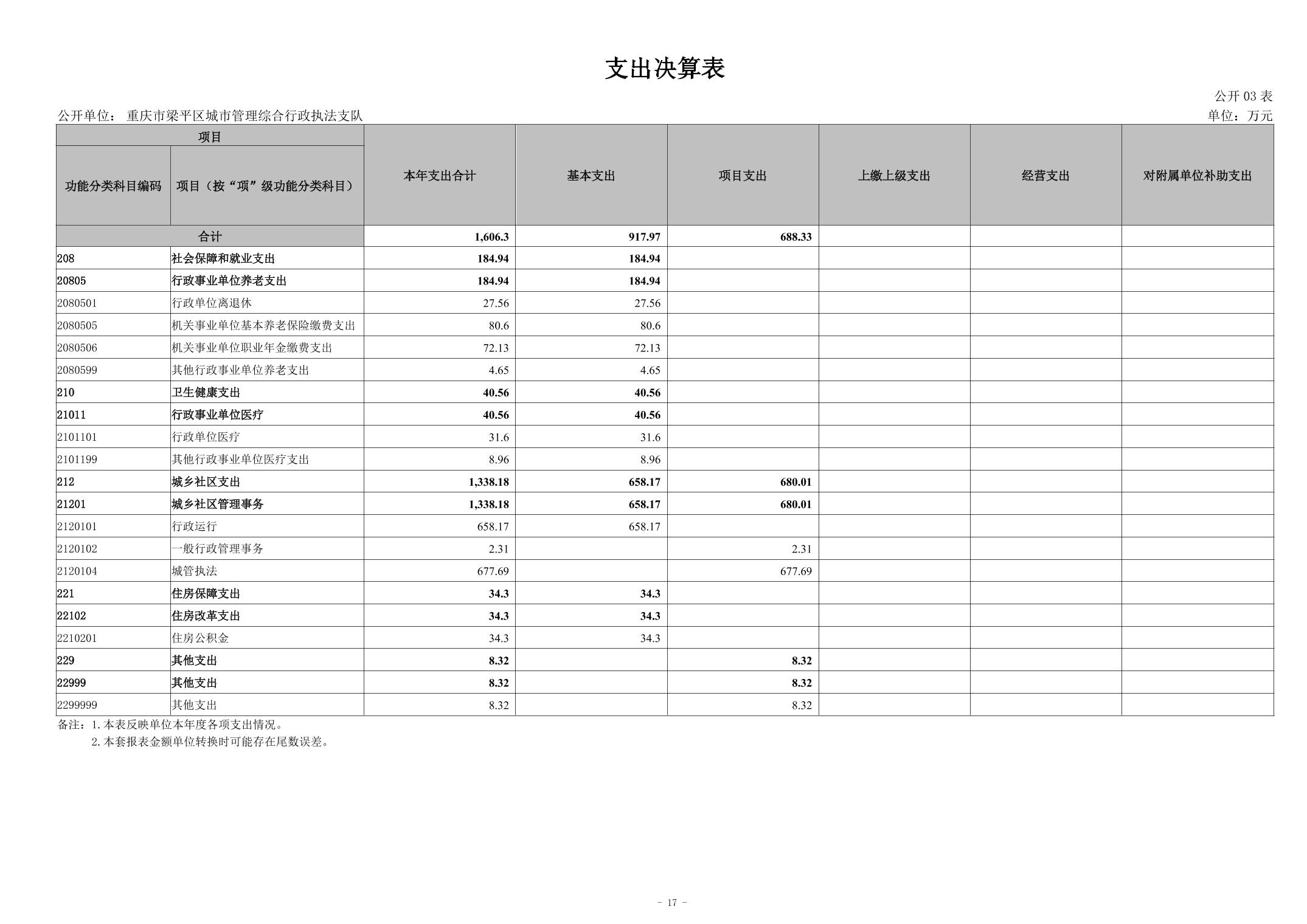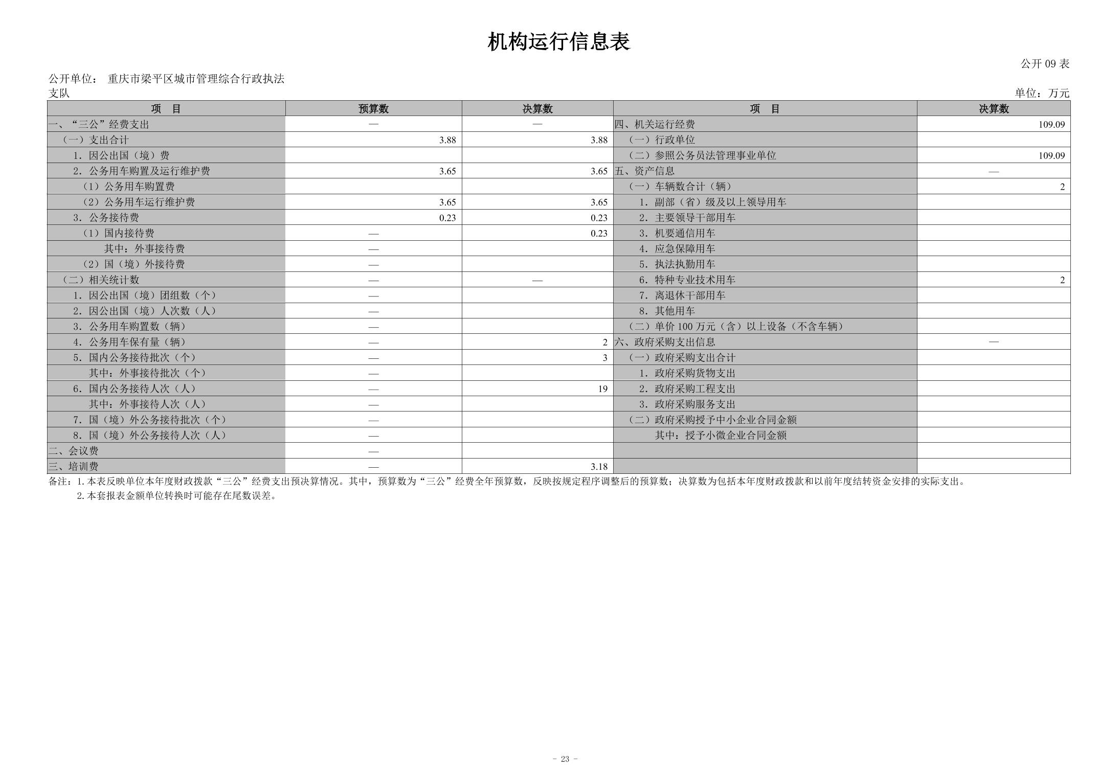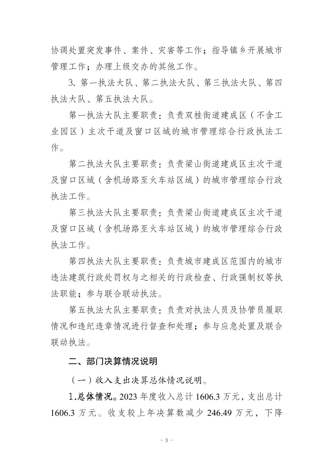 | 標題 | 重慶市梁平區城市管理綜合行政執法支隊2023年度決算公開說明 |