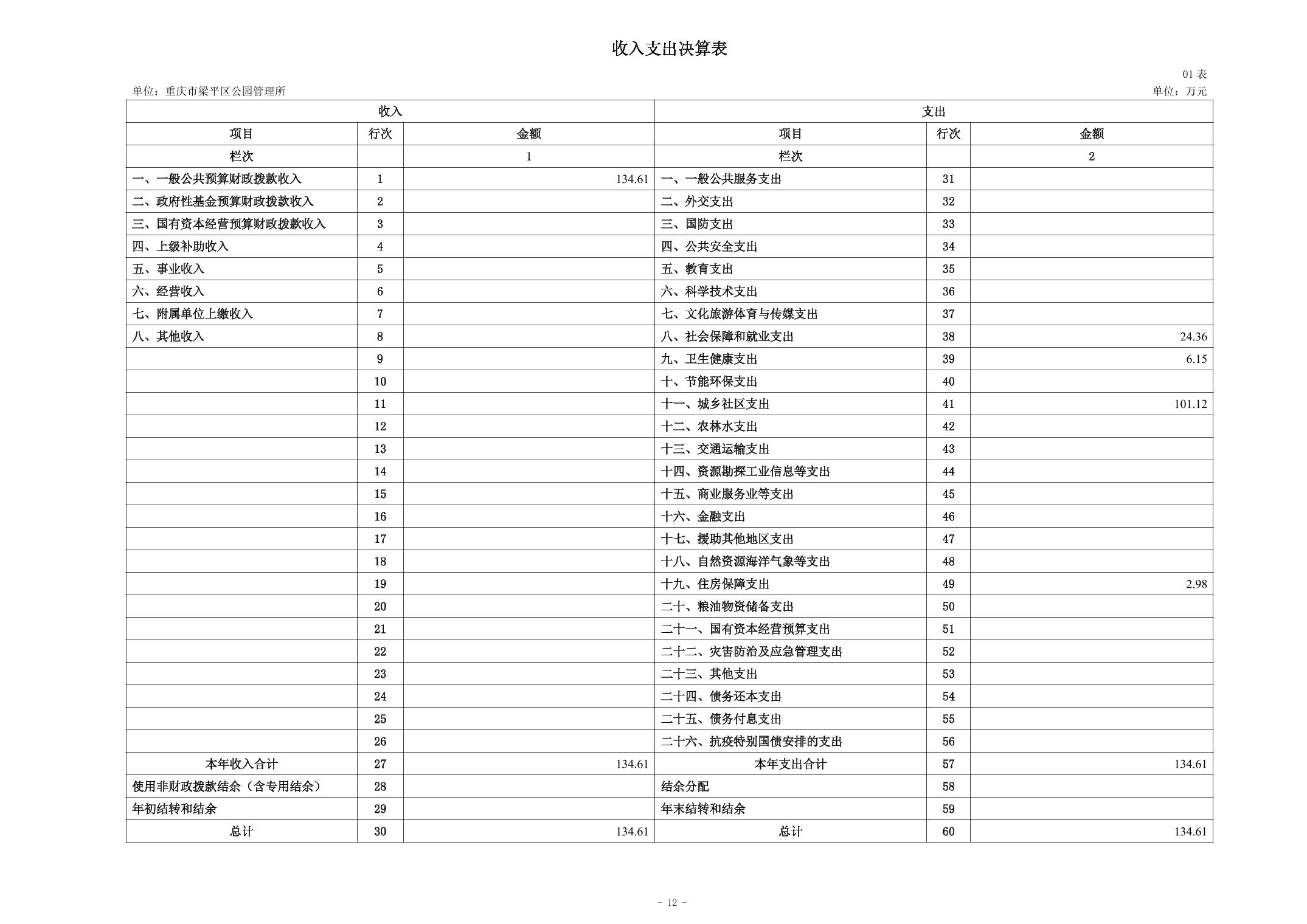 | 標題 | 重慶市梁平區公園管理所2024年度決算公開說明 |