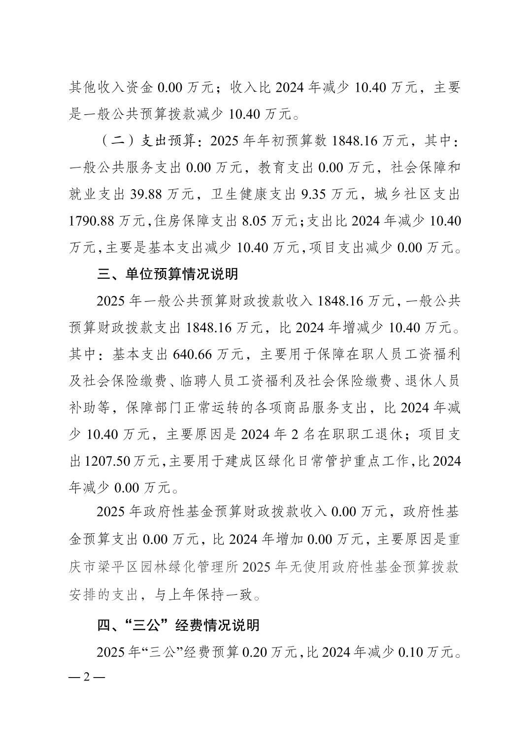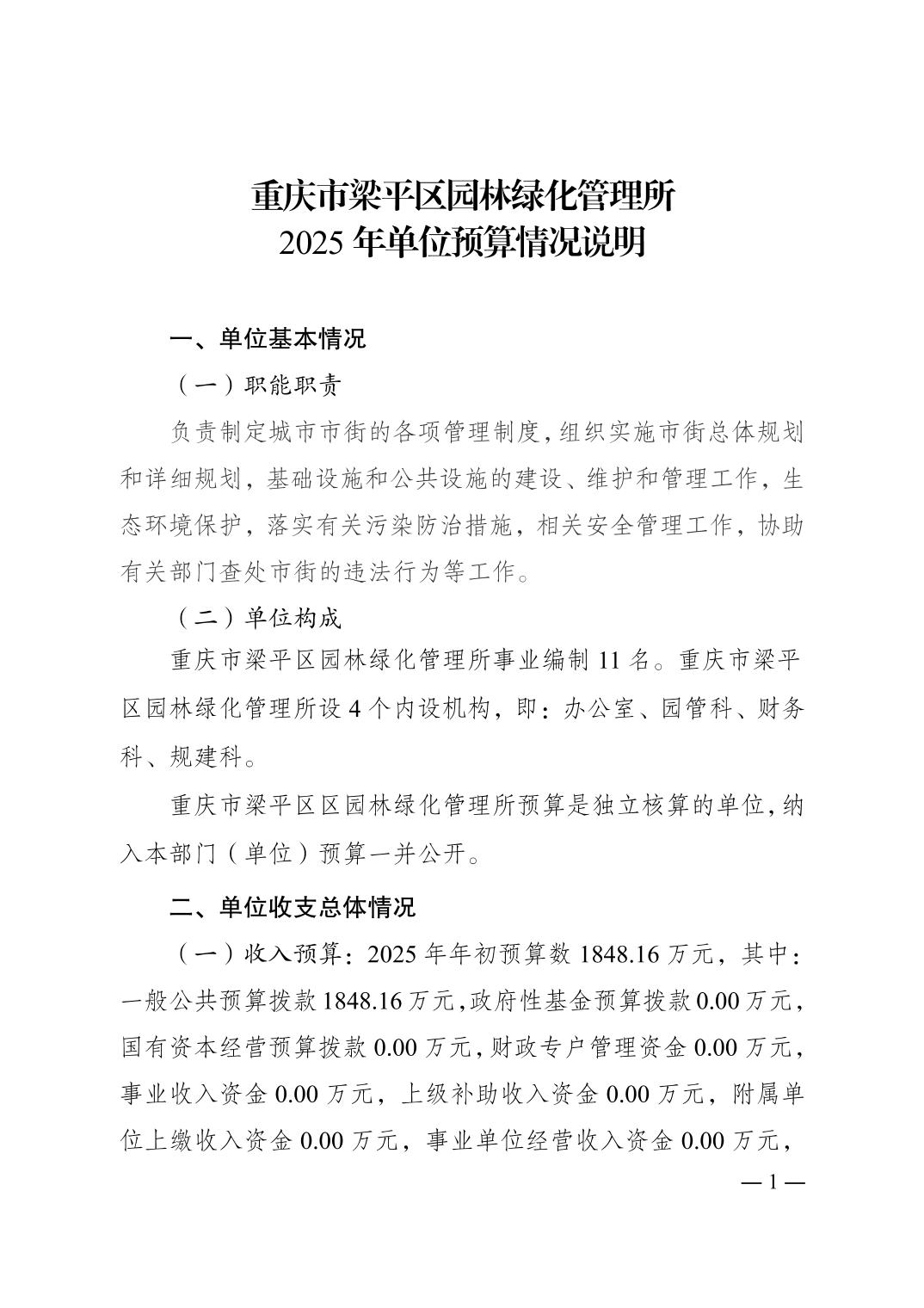 | 標(biāo)題 | 重慶市梁平區(qū)園林綠化管理所2025 年單位預(yù)算情況說明 |