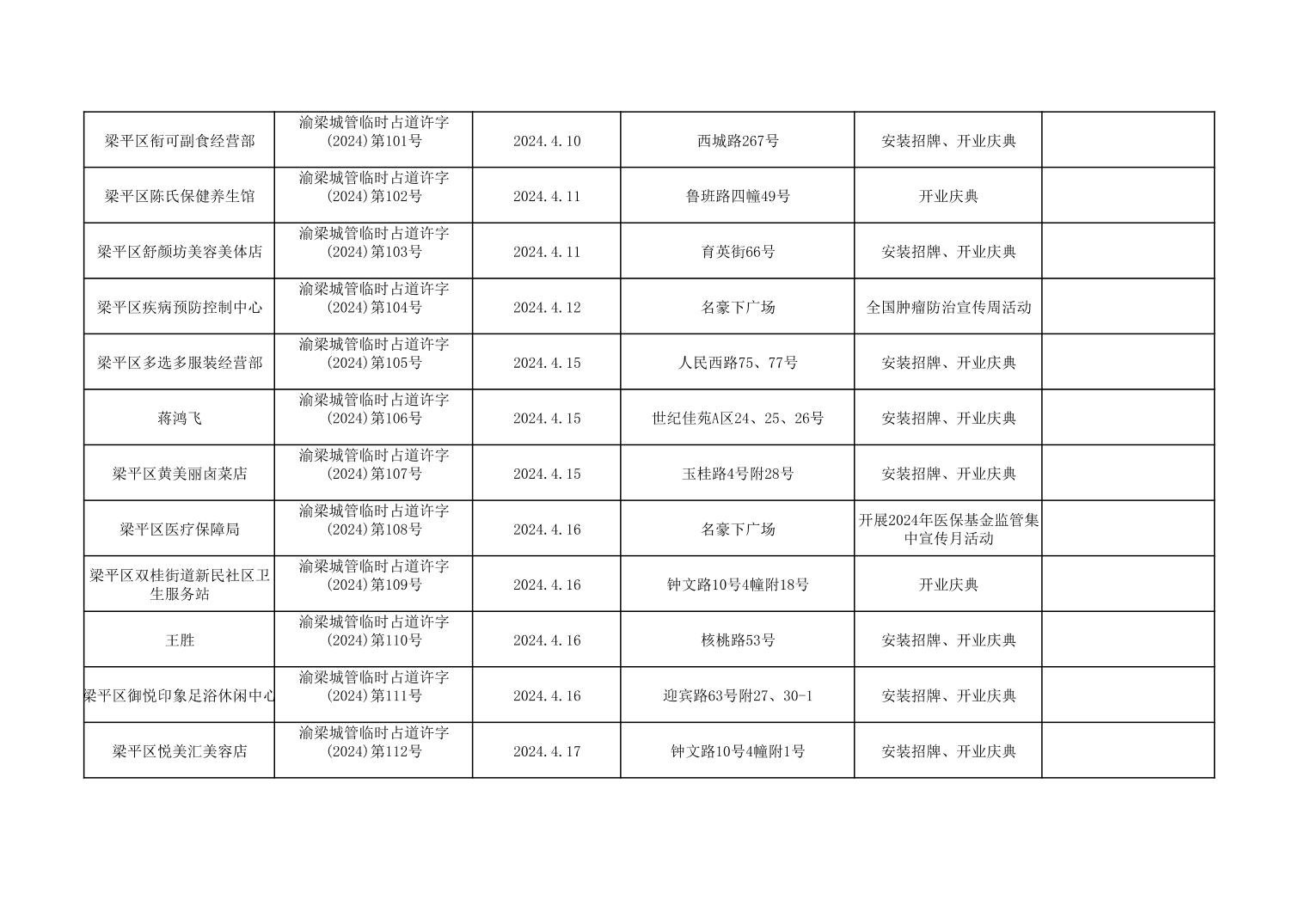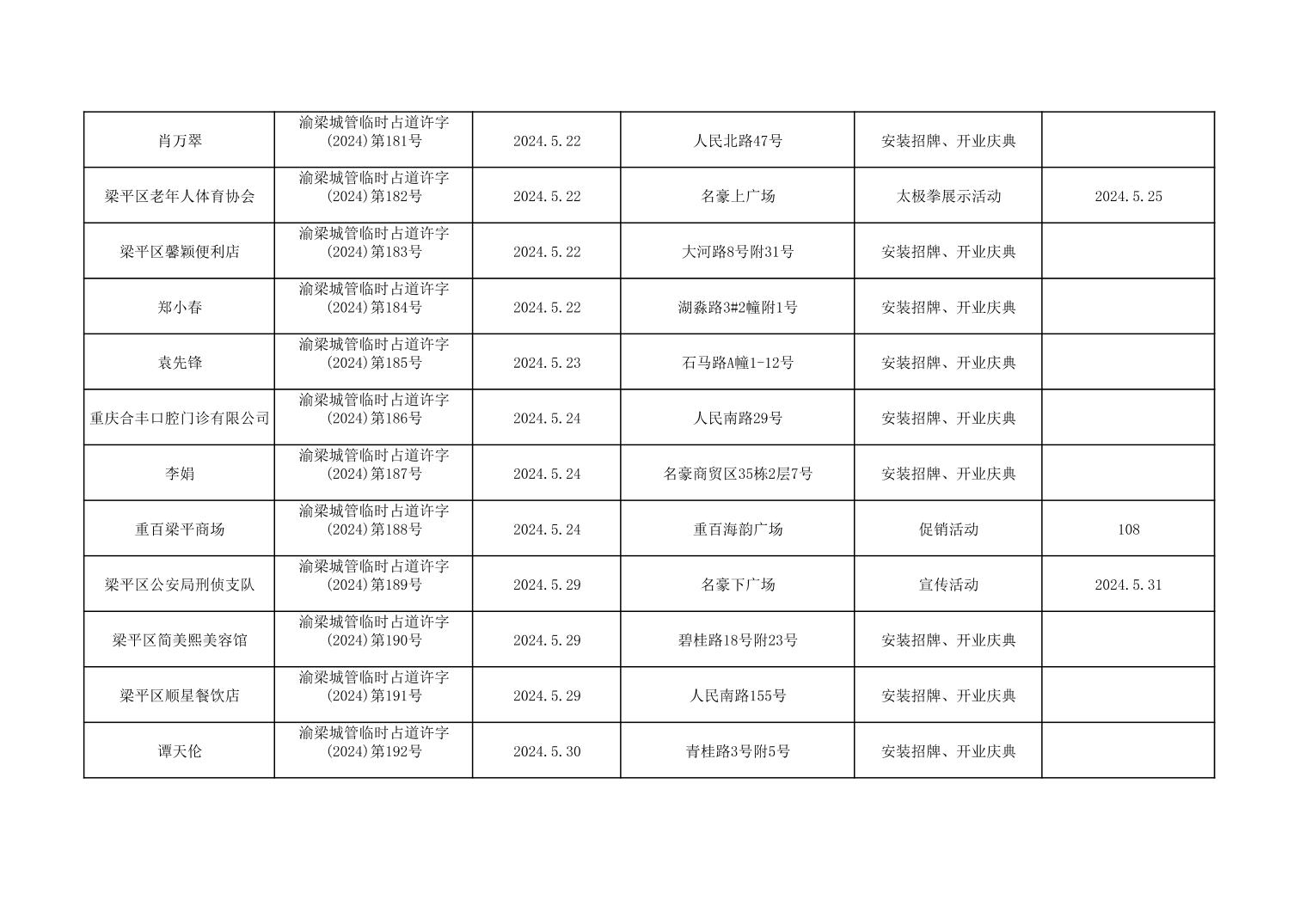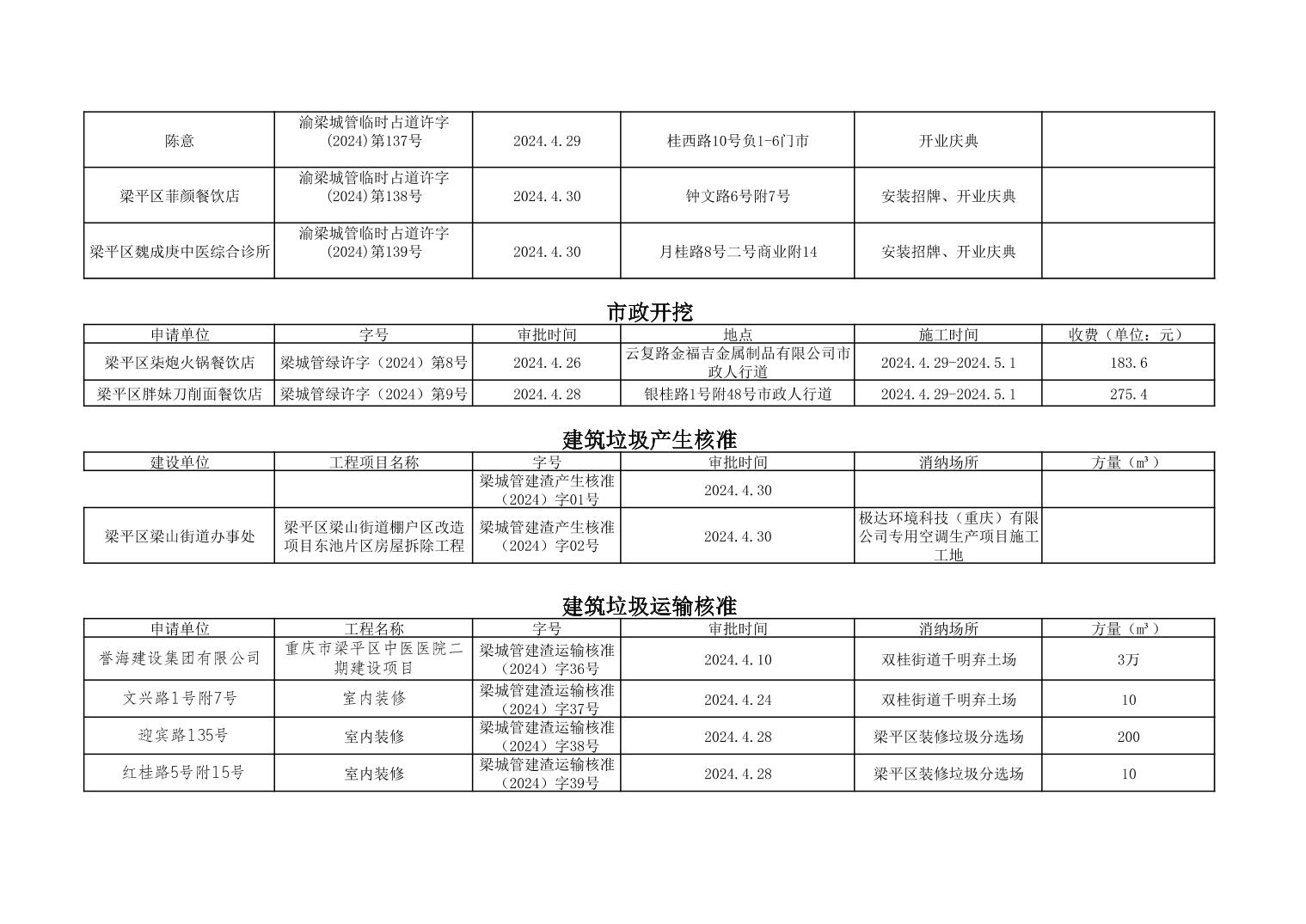 | 標題 | 重慶市梁平區城市管理局2024年行政許可事項第三次公示 |