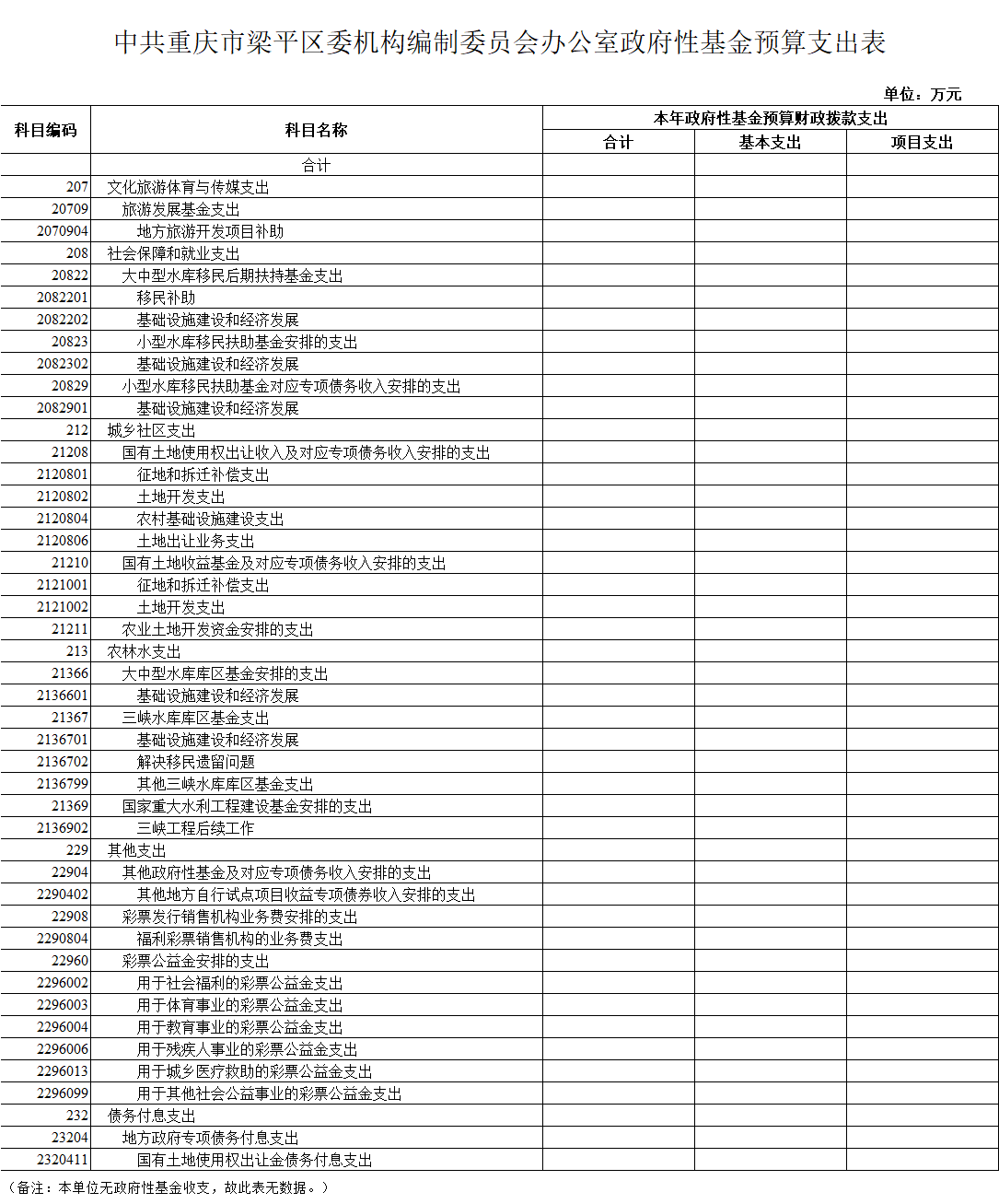 中共重慶市梁平區委機構編制委員會辦公室2020年未使用政府性基金預算撥款安排的支出。