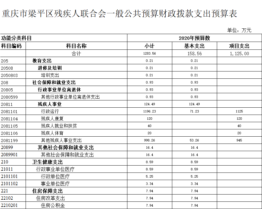 | 標題 | 重慶市梁平區殘疾人聯合會2020年部門預算情況說明 |