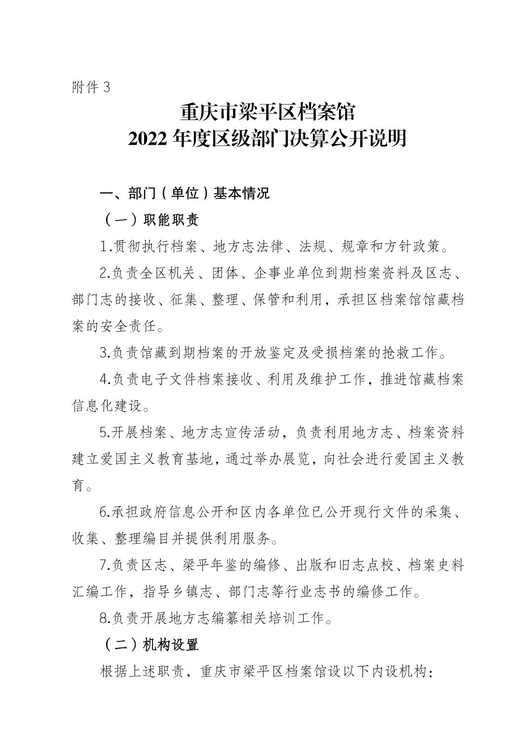 | 標(biāo)題 | 重慶市梁平區(qū)檔案館2022年度區(qū)級(jí)部門決算公開說(shuō)明 |