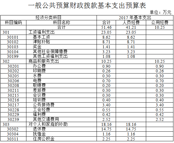 1、部門運行經費(即公用經費)。2017年一般公共預算財政撥款運行經費10.25萬元,主要用于:辦公費及印刷費、水費、電費、取暖費、差旅費、培訓費、接待費等其他商品和服務支出。