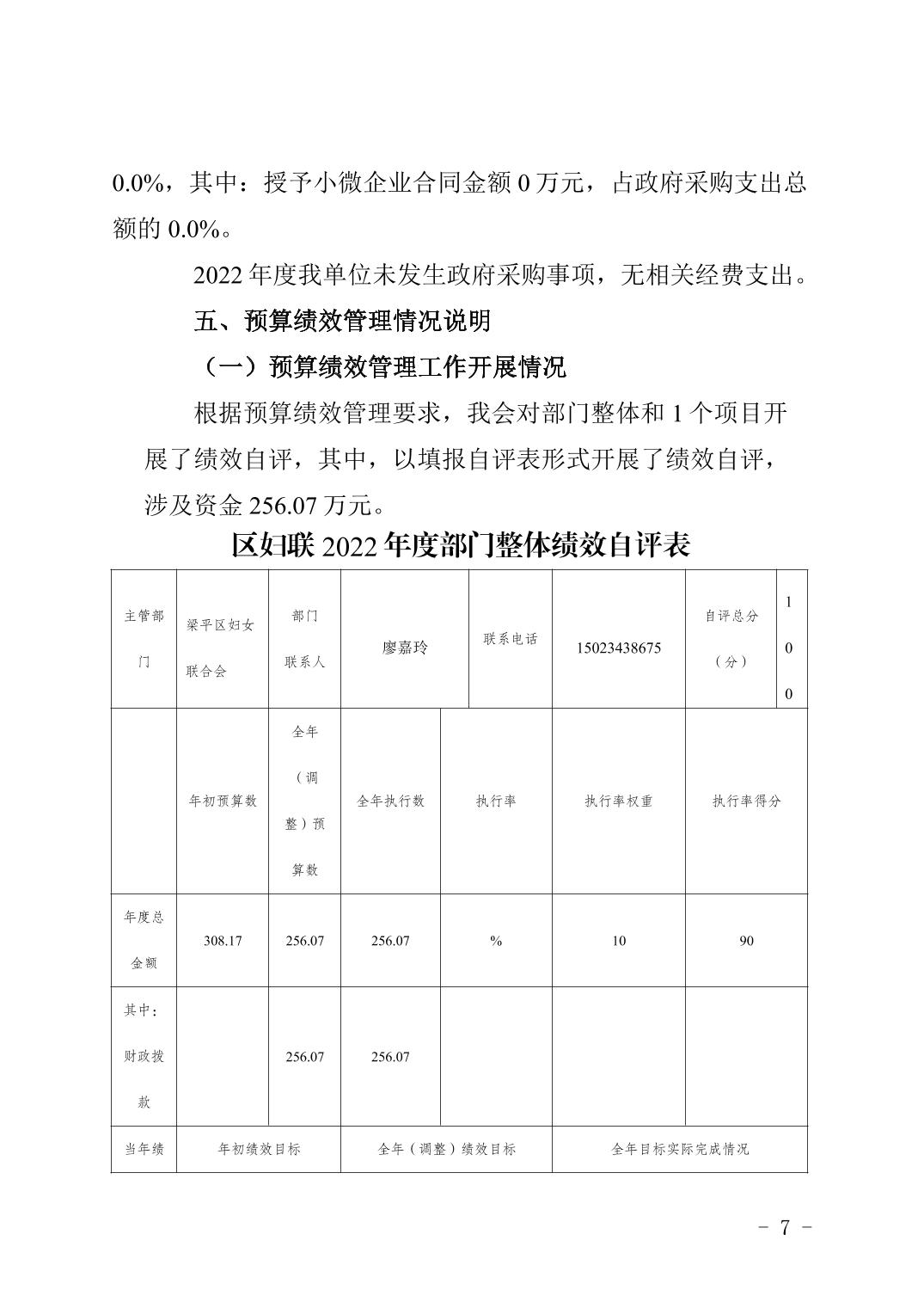 | 標題 | 重慶市梁平區婦女聯合會2022年度部門決算情況說明 |
