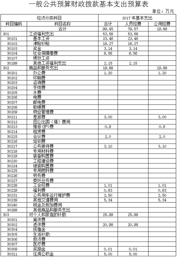 1、部門運(yùn)行經(jīng)費(fèi)(即公用經(jīng)費(fèi))。2017年一般公共預(yù)算財(cái)政撥款運(yùn)行經(jīng)費(fèi)19.88萬元,主要用于:辦公費(fèi)、差旅費(fèi)、維修(護(hù))費(fèi)、會(huì)議費(fèi)、公務(wù)接待、公車運(yùn)行維護(hù)費(fèi)、其他交通費(fèi)用、其他商品和服務(wù)支出。