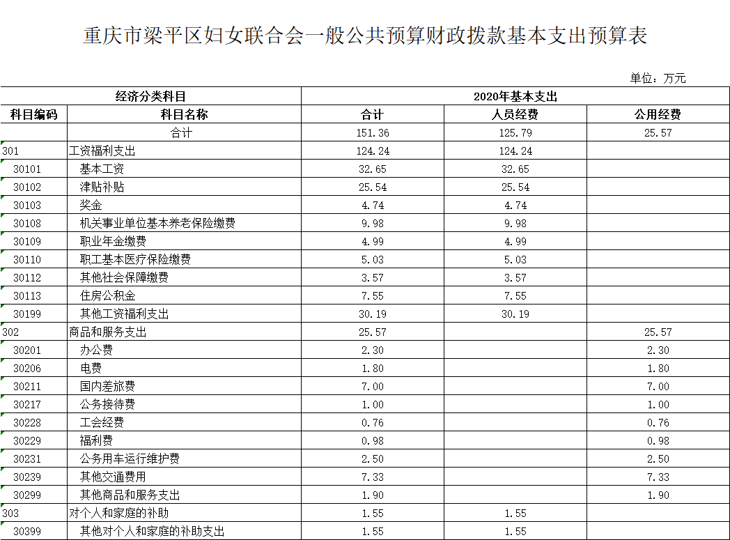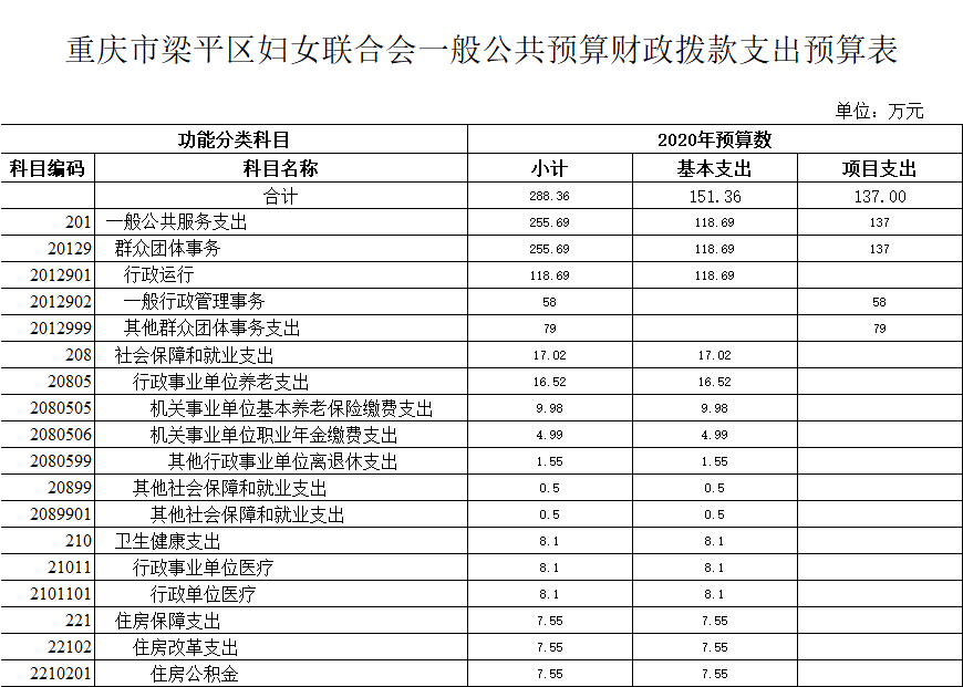 | 標題 | 重慶市梁平區婦女聯合會2020年部門預算情況說明 |