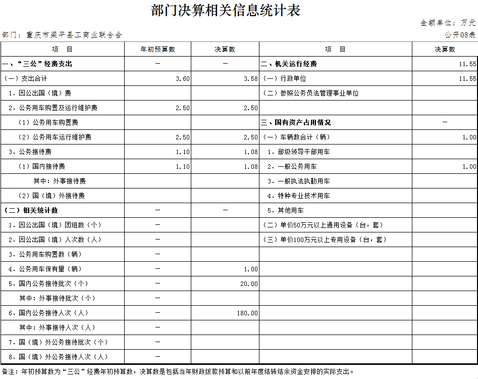 (八)“三公”經(jīng)費(fèi):指用一般公共預(yù)算財(cái)政撥款安排的因公出國(guó)(境)費(fèi)、公務(wù)用車購(gòu)置及運(yùn)行維護(hù)費(fèi)、公務(wù)接待費(fèi)。其中,因公出國(guó)(境)費(fèi)反映單位公務(wù)出國(guó)(境)的國(guó)際旅費(fèi)、國(guó)外城市間交通費(fèi)、住宿費(fèi)、伙食費(fèi)、培訓(xùn)費(fèi)、公雜費(fèi)等支出;公務(wù)用車購(gòu)置費(fèi)反映單位公務(wù)用車購(gòu)置支出(含車輛購(gòu)置稅);公務(wù)用車運(yùn)行維護(hù)費(fèi)反映單位按規(guī)定保留的公務(wù)用車燃料費(fèi)、維修費(fèi)、過(guò)路過(guò)橋費(fèi)、保險(xiǎn)費(fèi)、安全獎(jiǎng)勵(lì)費(fèi)用等支出;公務(wù)接待費(fèi)反映單位按規(guī)定開(kāi)支的各類公務(wù)接待(含外賓接待)支出。