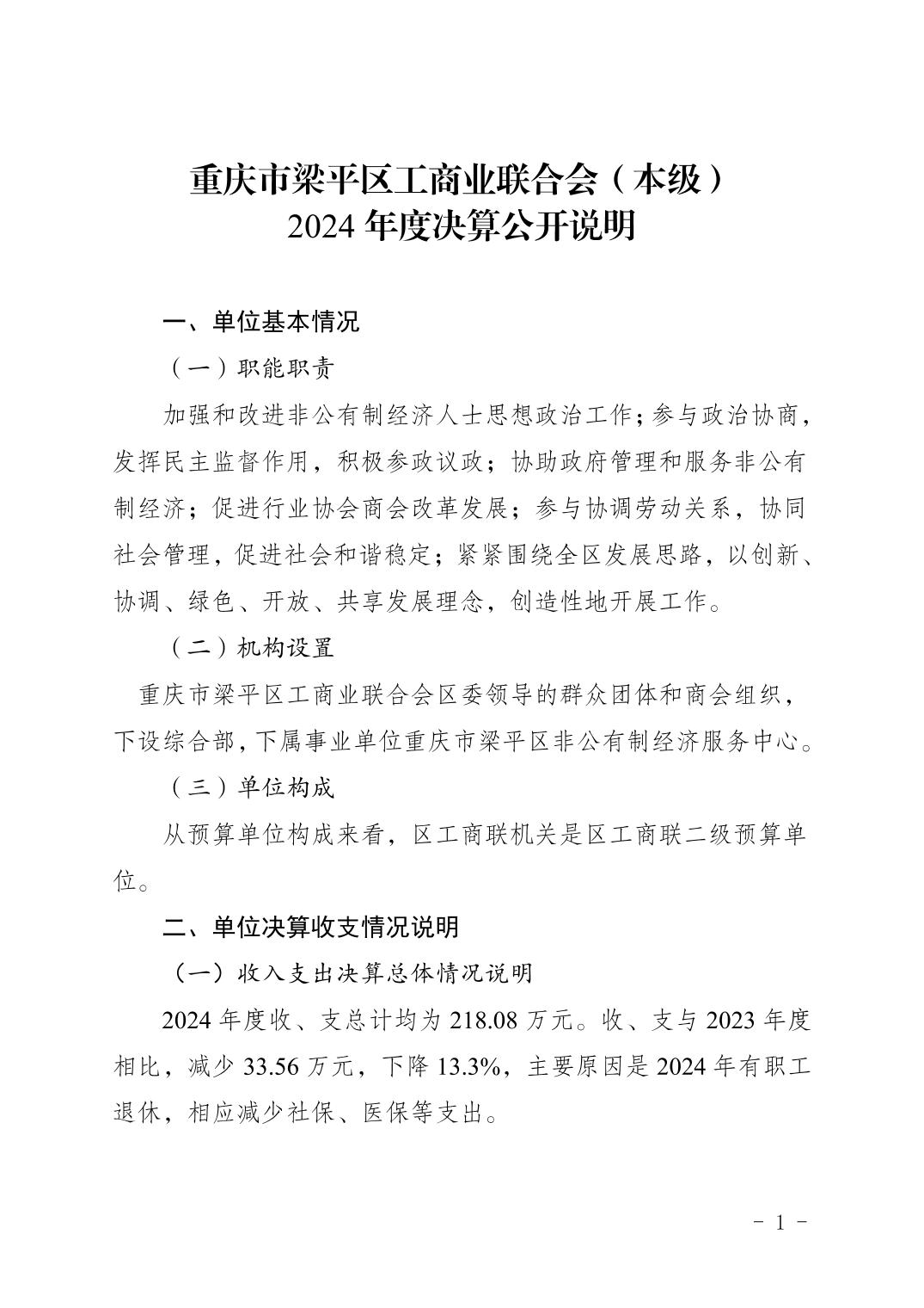 | 標(biāo)題 | 重慶市梁平區(qū)工商業(yè)聯(lián)合會(huì)(本級(jí)) 2024 年度決算公開說(shuō)明 |