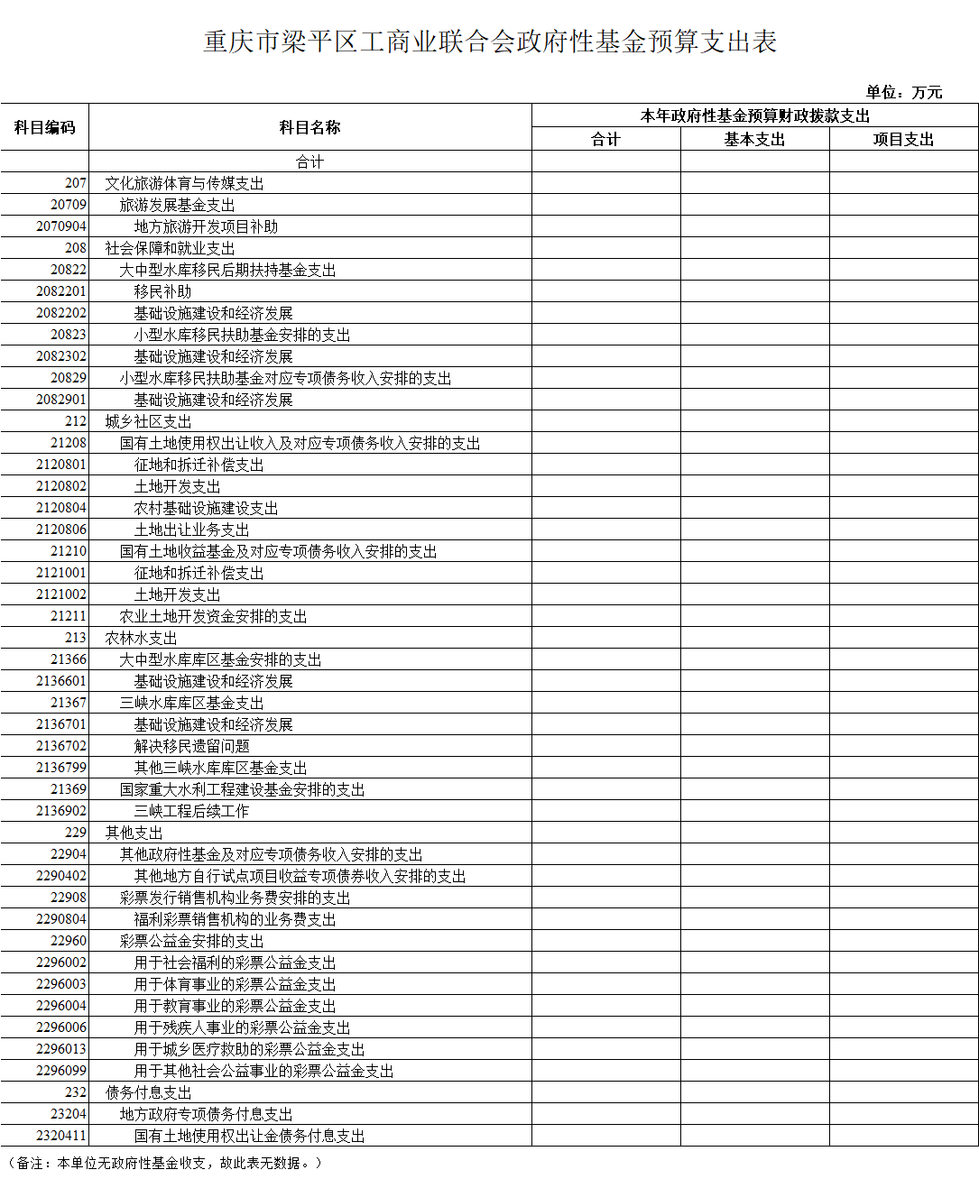 重慶市梁平區(qū)工商業(yè)聯(lián)合會2020年未使用政府性基金預(yù)算撥款安排的支出