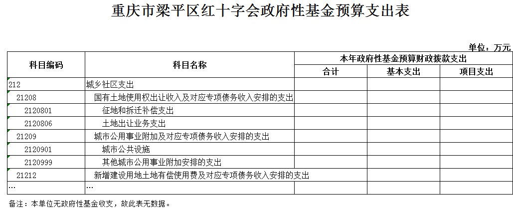 2019年政府性基金預算收入0萬元,政府性基金預算支出0萬元,比2018年增加0萬元,主要原因是重慶市梁平區紅十字會2019年未使用政府性基金預算撥款安排的支出。