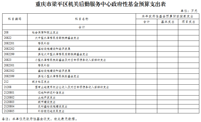 重慶市梁平區機關后勤服務中心2019年未使用政府性基金預算撥款安排的支出。