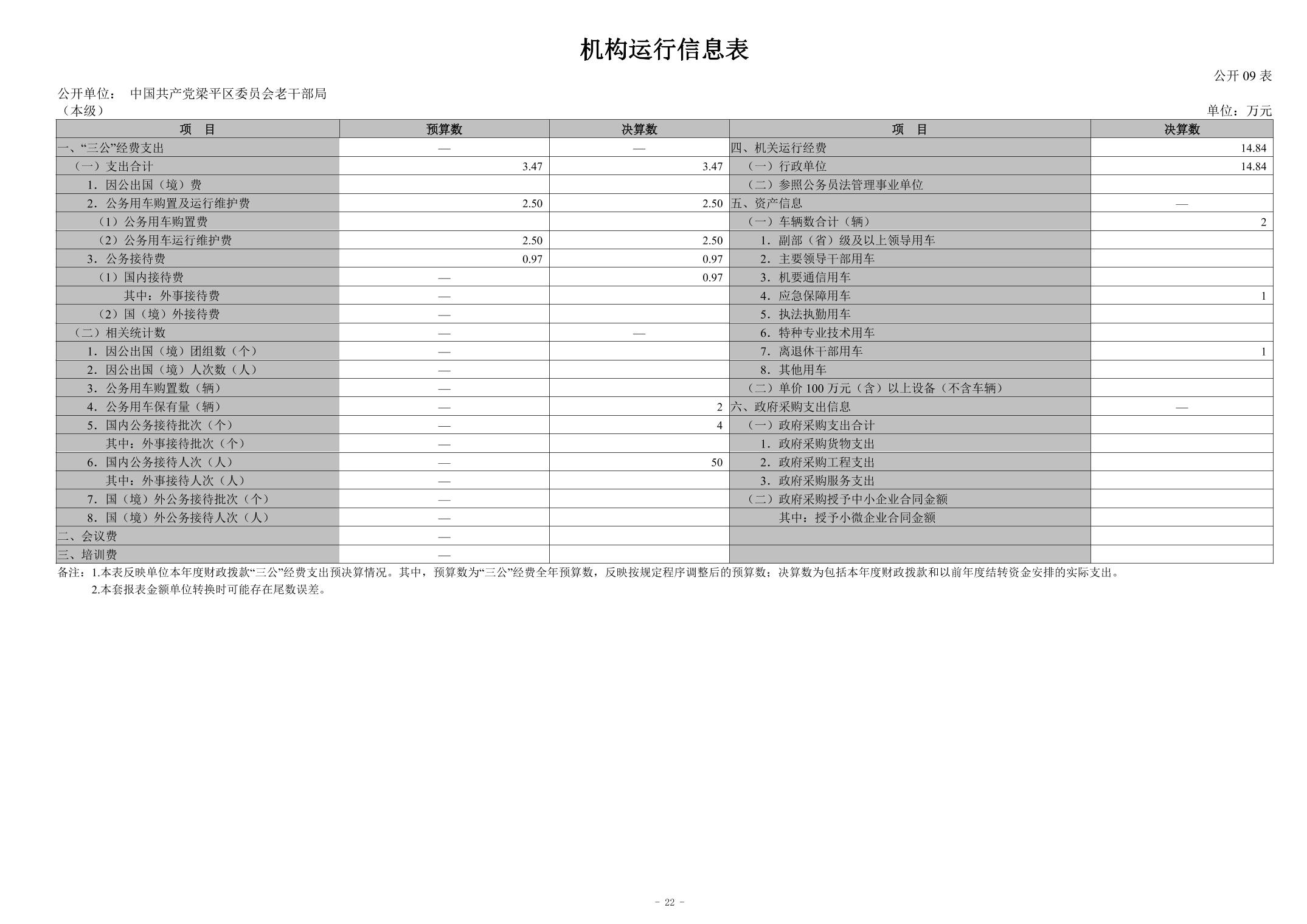 | 標題 | 中共重慶市梁平區委員會老干部局(本級)2023 年度決算公開說明 |