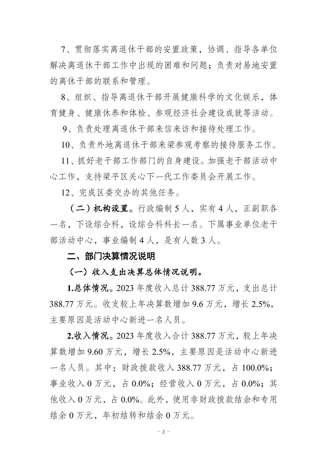 | 標題 | 中共重慶市梁平區(qū)委員會老干部局2023 年度決算公開說明 |