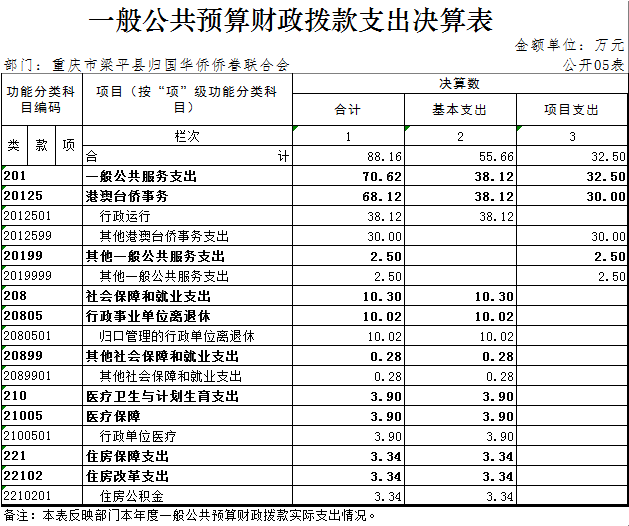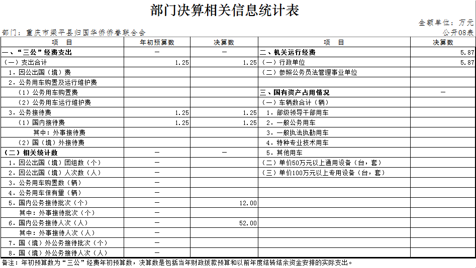 (八)“三公”經(jīng)費:指用一般公共預算財政撥款安排的因公出國(境)費、公務用車購置及運行維護費、公務接待費。其中,因公出國(境)費反映單位公務出國(境)的國際旅費、國外城市間交通費、住宿費、伙食費、培訓費、公雜費等支出;公務用車購置費反映單位公務用車購置支出(含車輛購置稅);公務用車運行維護費反映單位按規(guī)定保留的公務用車燃料費、維修費、過路過橋費、保險費、安全獎勵費用等支出;公務接待費反映單位按規(guī)定開支的各類公務接待(含外賓接待)支出。