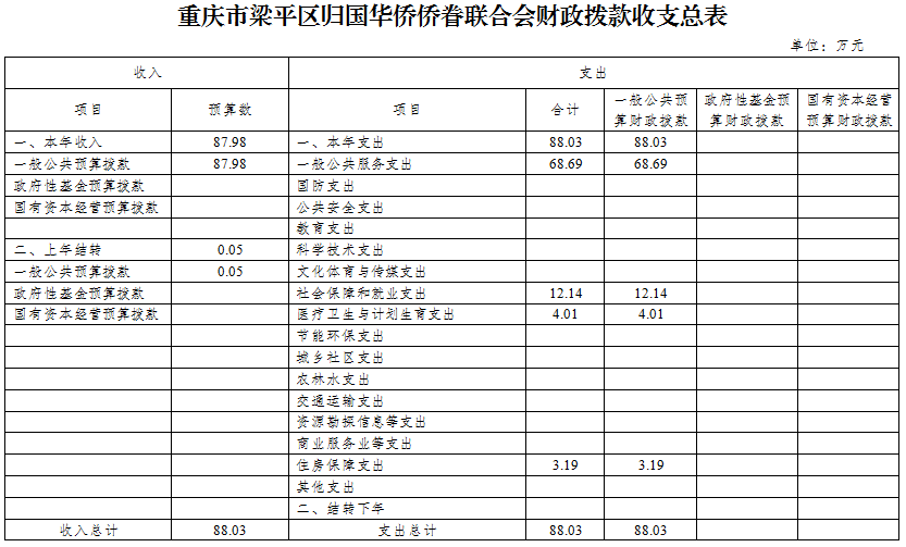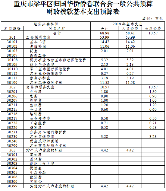 | 標題 | 重慶市梁平區歸國華僑僑眷聯合會2019年部門預算情況說明 |