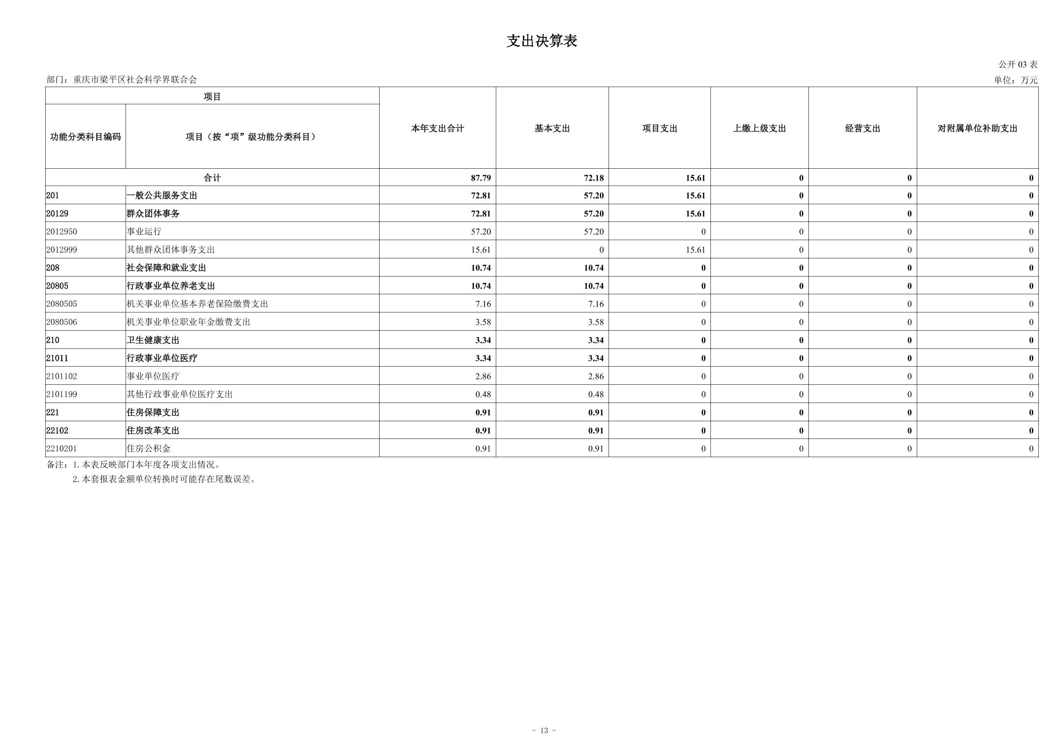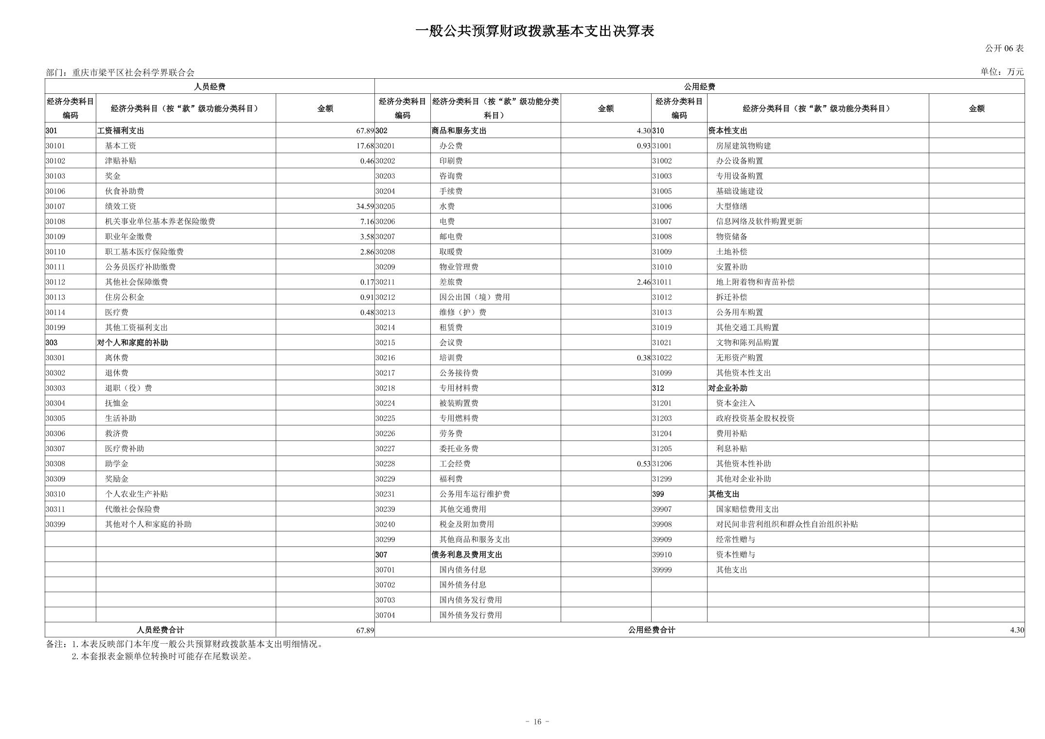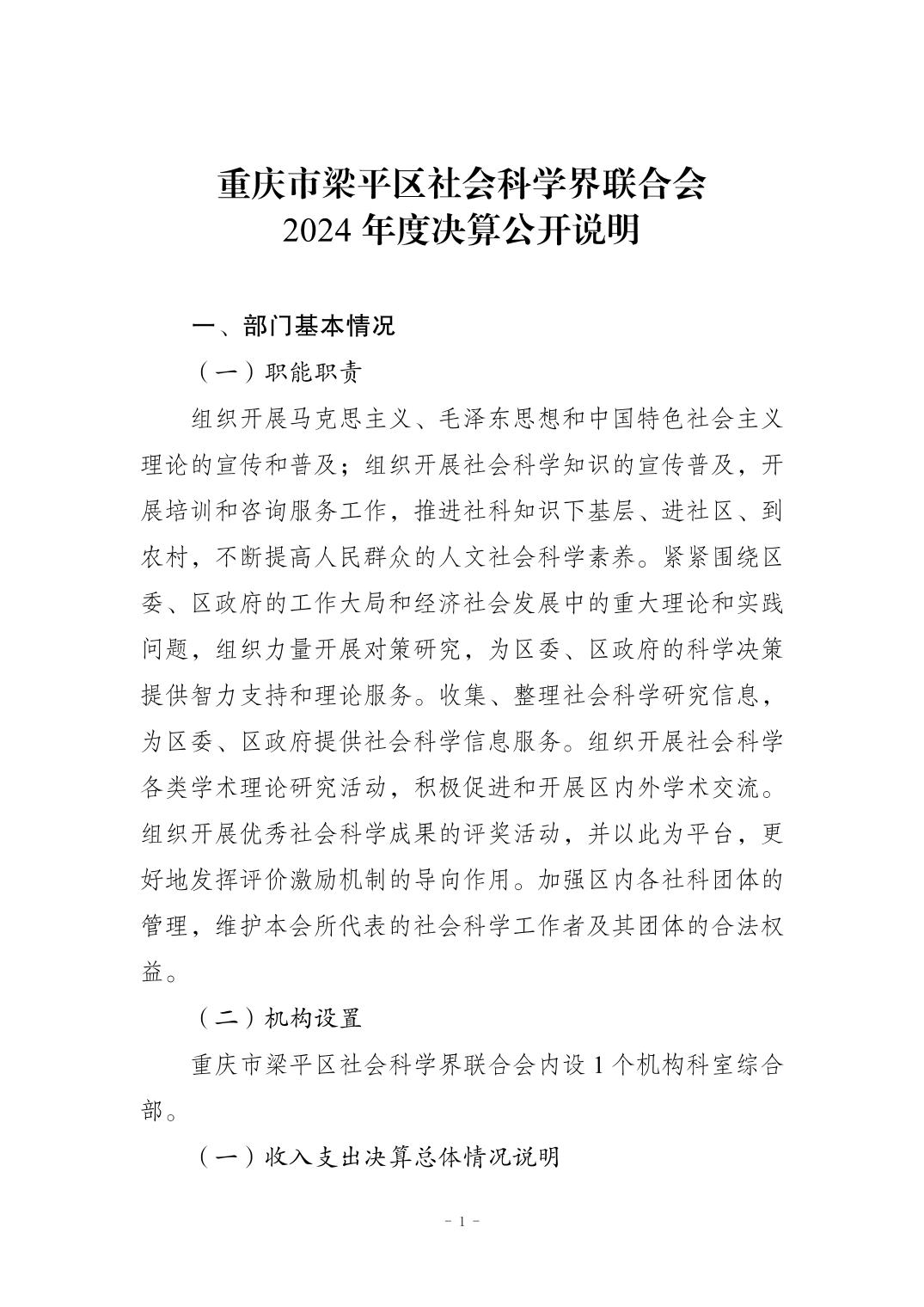 | 標題 | 重慶市梁平區社會科學界聯合會 2024 年度決算公開說明 |