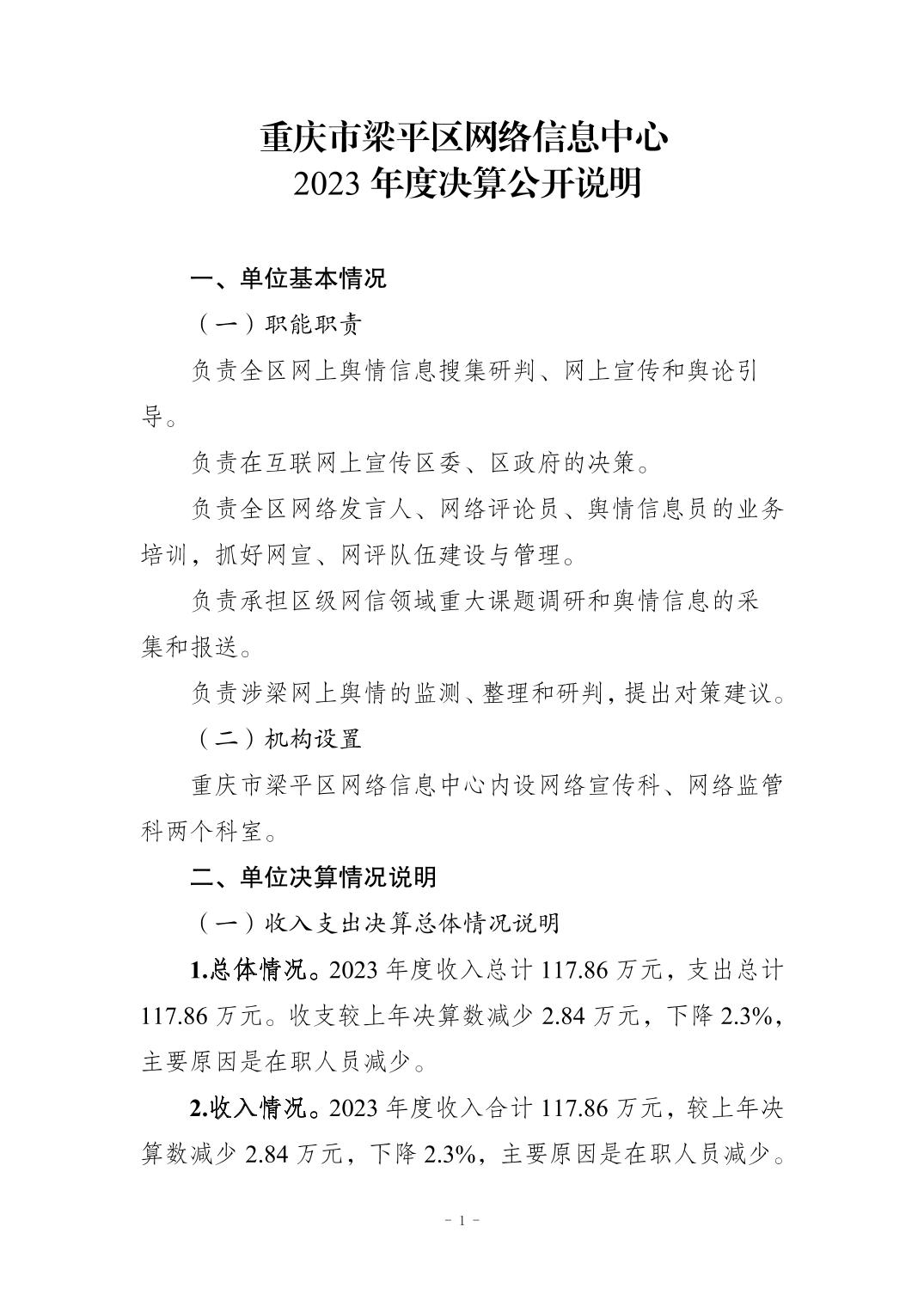 | 標題 | 重慶市梁平區網絡信息中心2023年度決算公開說明 |