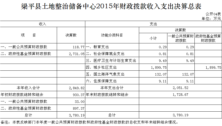 | 標題 | 梁平縣土地整治儲備中心2015年部門決算情況說明 | ||