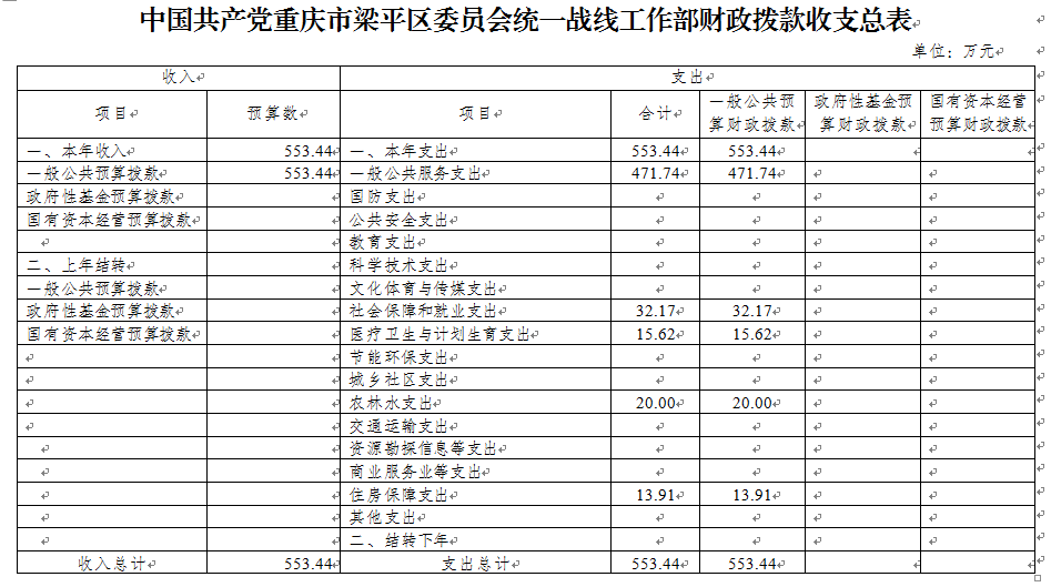 首頁(yè)>重慶市梁平區(qū)財(cái)政局>政務(wù)公開(kāi)>區(qū)委統(tǒng)戰(zhàn)部>預(yù)算決算