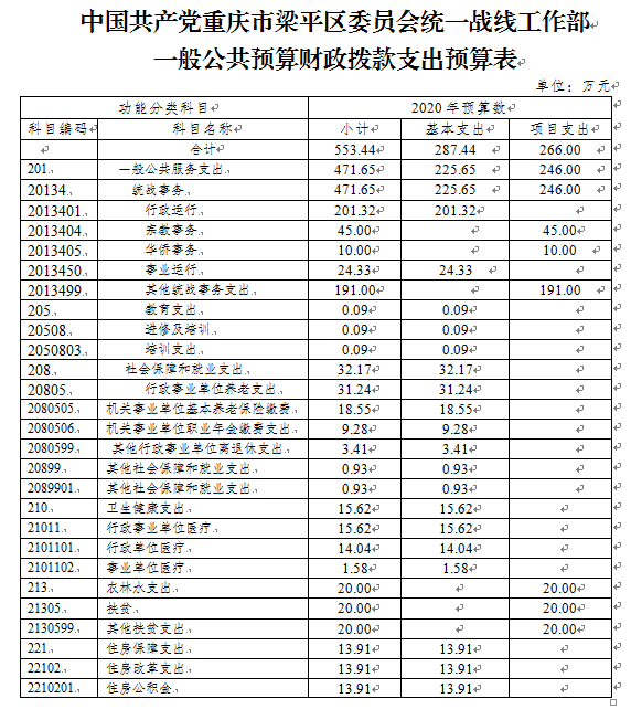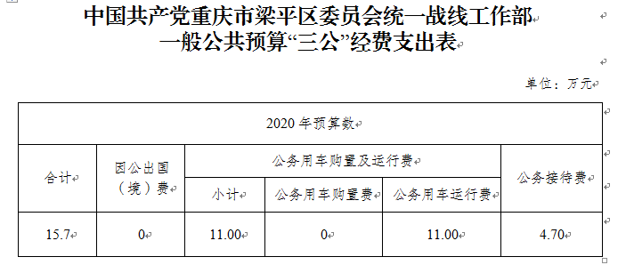 | 標(biāo)題 | 中國(guó)共產(chǎn)黨重慶市梁平區(qū)委員會(huì)統(tǒng)戰(zhàn)部2020年部門預(yù)算情況說(shuō)明 | ||
