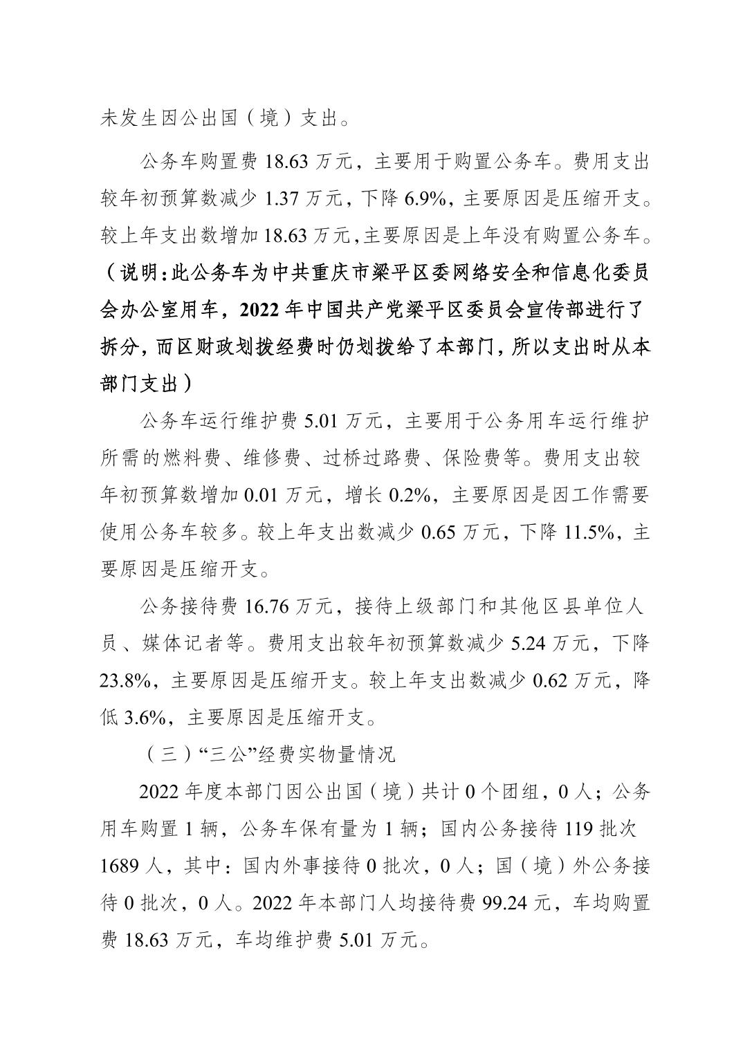 | 標題 | 中國共產黨梁平區委員會宣傳部2022年度部門決算情況說明 |