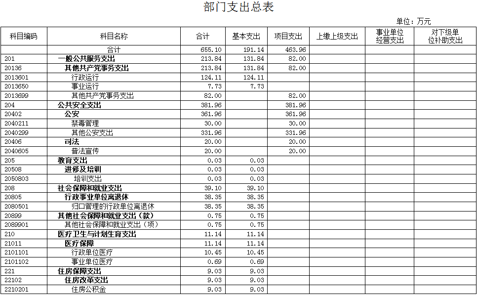 2017年一般公共預算財政撥款收入586.14萬元,上年結余68.96萬元。一般公共預算財政撥款支出655.10萬元,比2016年增加138.13萬元。其中:基本支出191.14萬元,比2016年減少7.91萬元,主要原因是職工工作調(diào)動,主要用于保障在職人員工資福利及社會保險繳費,離退休人員離退休費及生活補助,保障部門正常運轉的各項商品服務支出;項目支出395萬元,比2016年增加146.05萬元,主要原因是工作項目增加,主要用于社會綜合治理、國安、高鐵護路、禁毒、流動人口管理、防邪等重點工作。