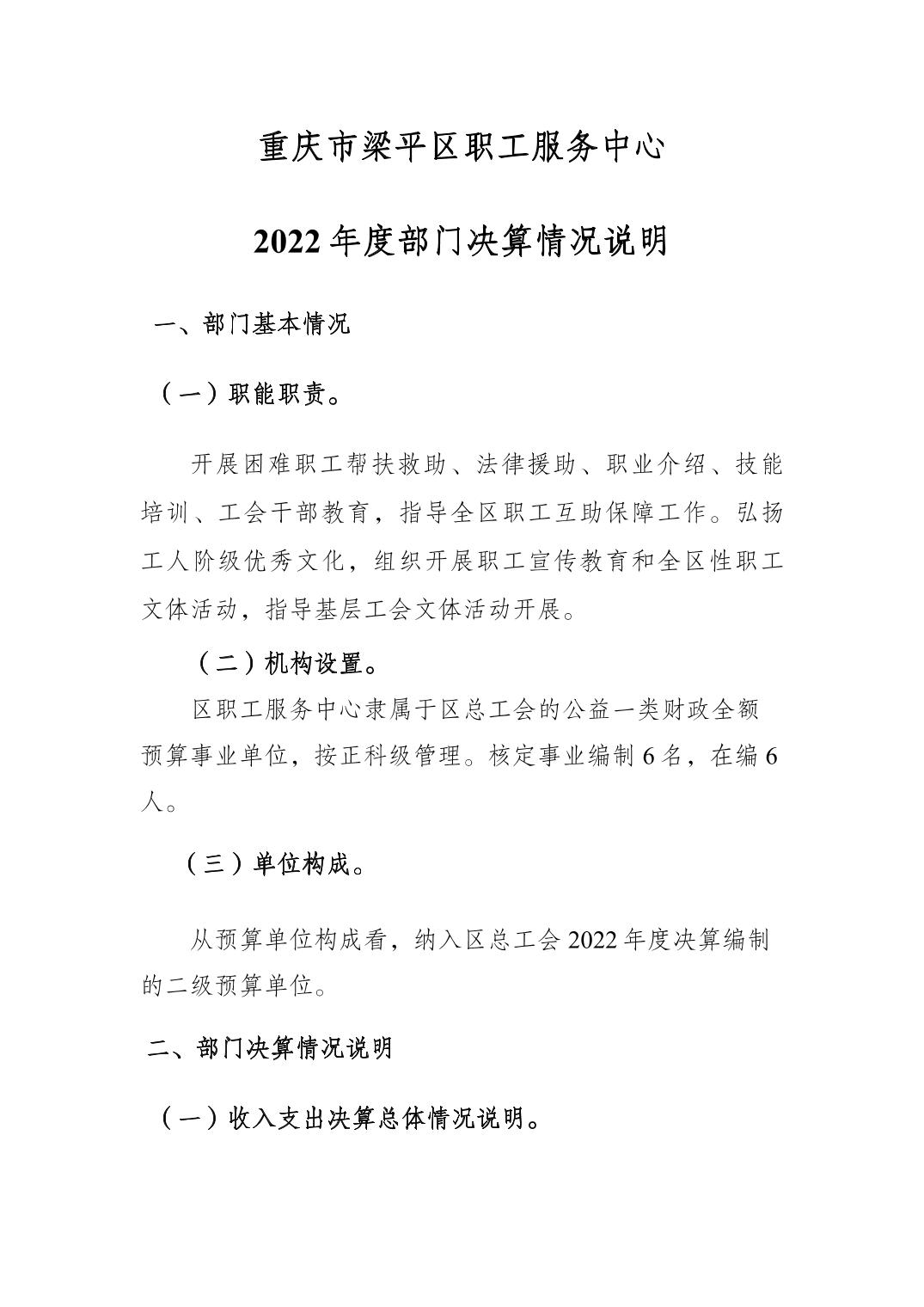 | 標題 | 重慶市梁平區職工服務中心2022年度部門決算情況說明 |