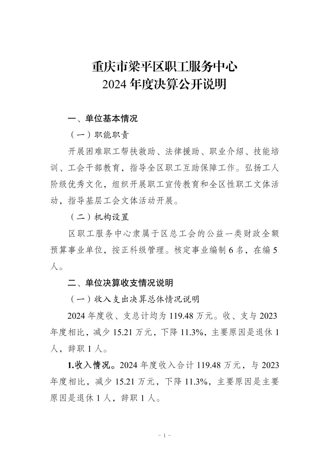| 標(biāo)題 | 重慶市梁平區(qū)職工服務(wù)中心 2024 年度決算公開說明 |