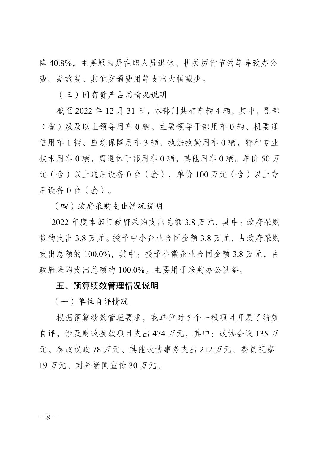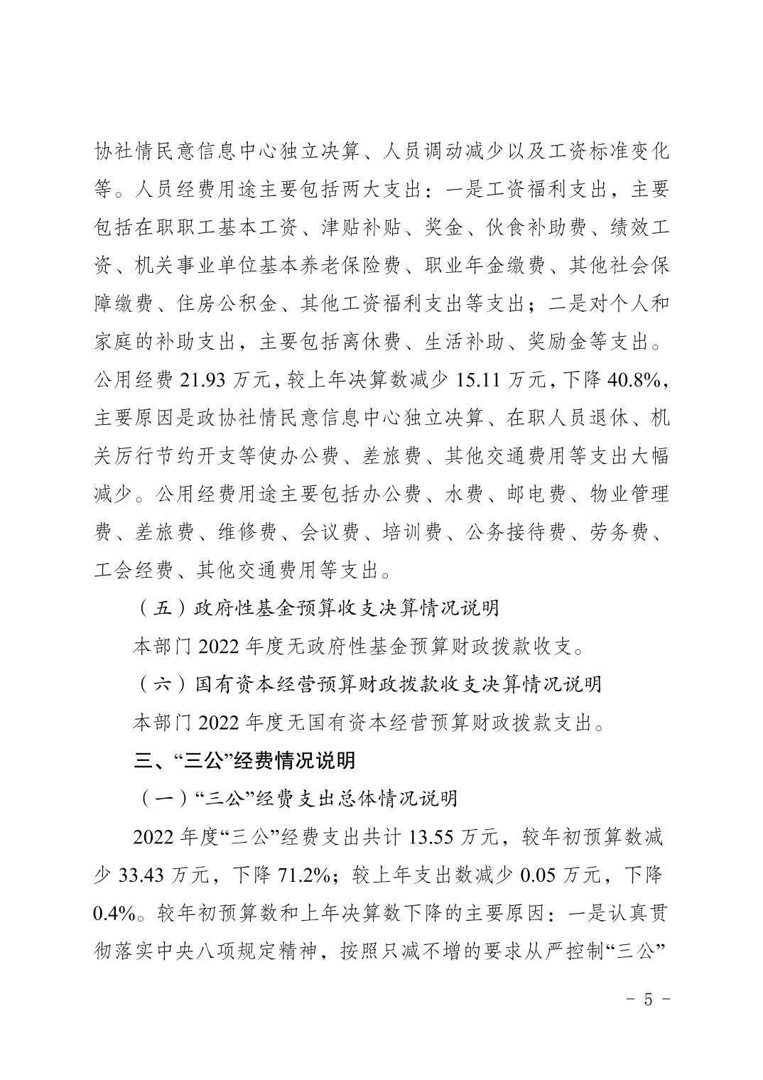 中國(guó)人民政治協(xié)商會(huì)議重慶市梁平區(qū)委員會(huì)辦公室(本級(jí))2022年度部門(mén)決算情況說(shuō)明 |