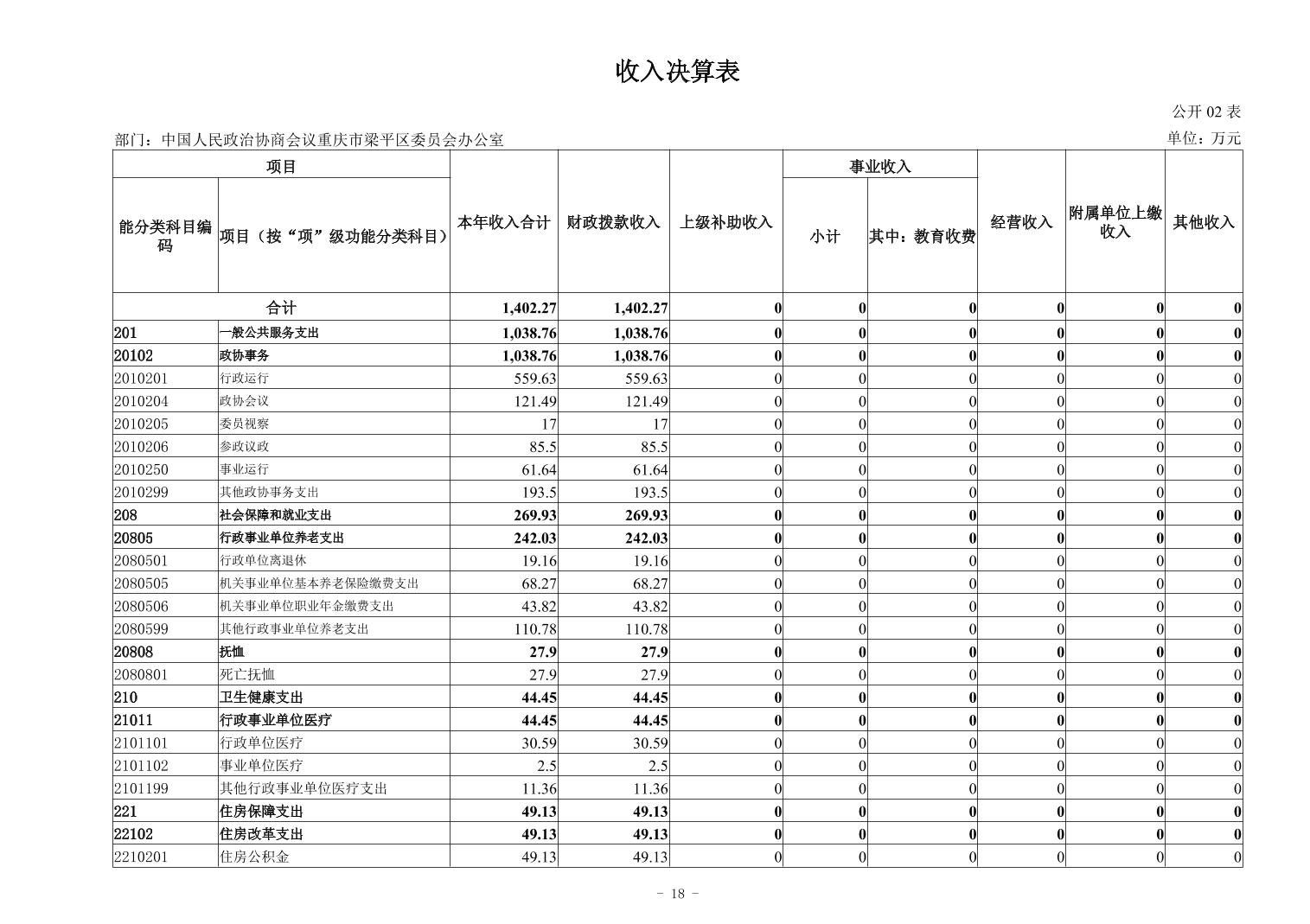 | 標題 | 中國人民政治協商會議重慶市梁平區 委員會辦公室 2024 年度決算公開說明 | ||