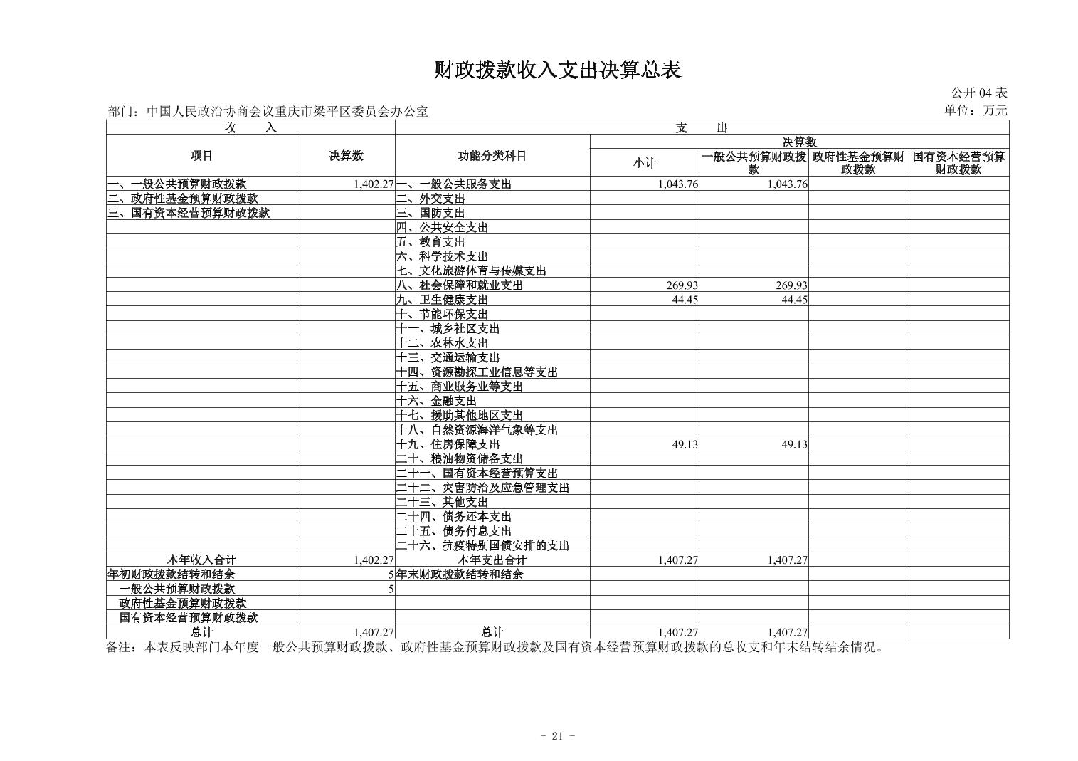 | 標題 | 中國人民政治協商會議重慶市梁平區 委員會辦公室 2024 年度決算公開說明 |