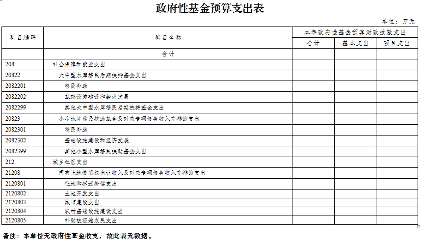 重慶市梁平區政協辦2019年未使用政府性基金預算撥款安排的支出。