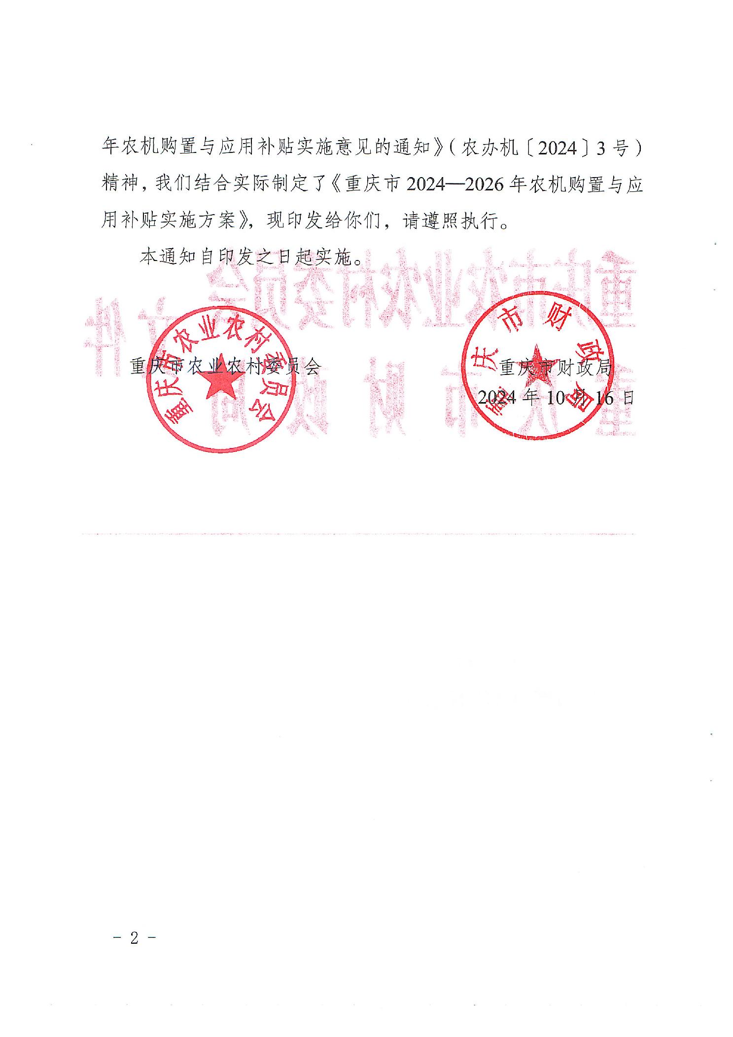 標題 重慶市2024-2026年農機購置與應用補貼實施方案