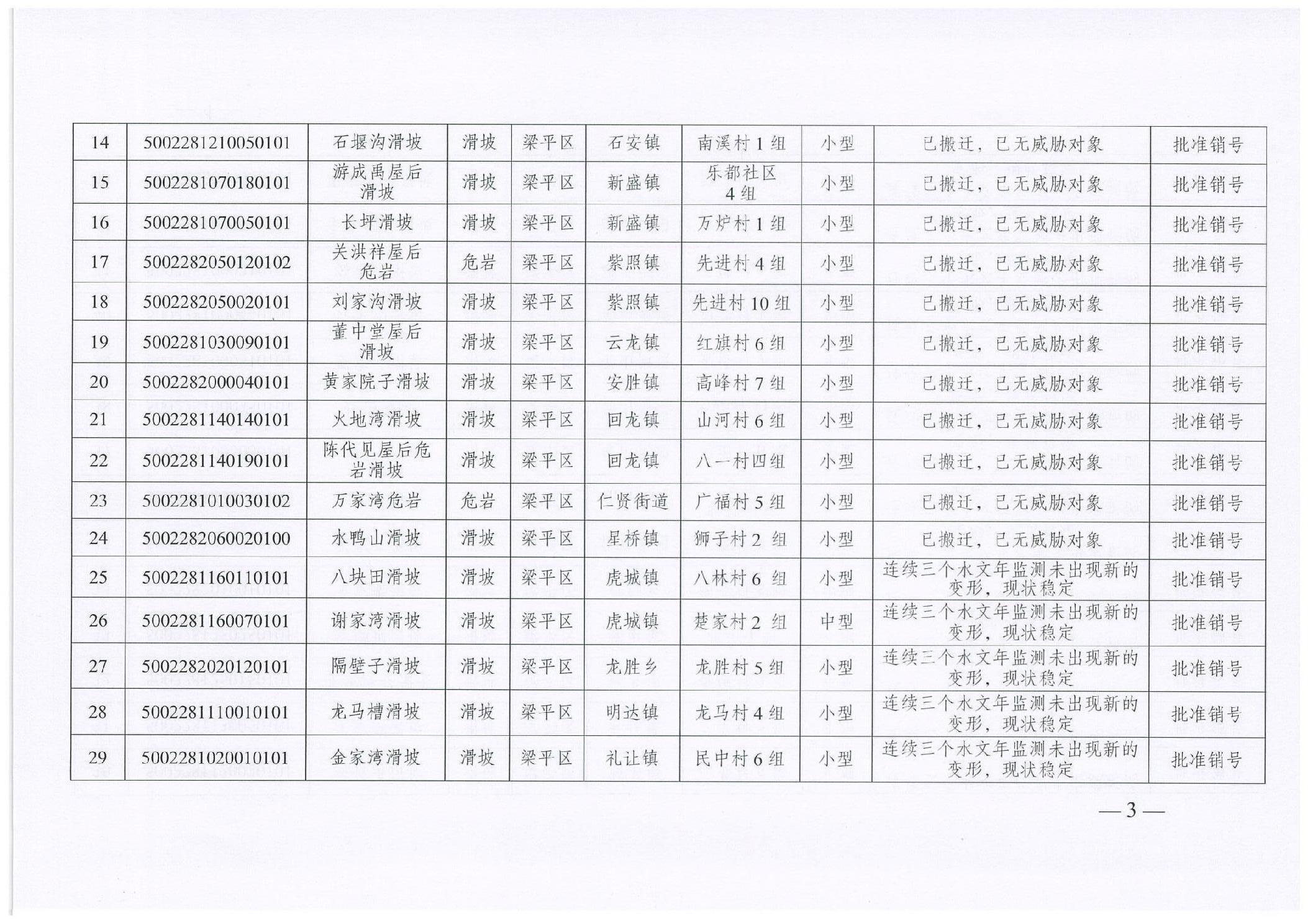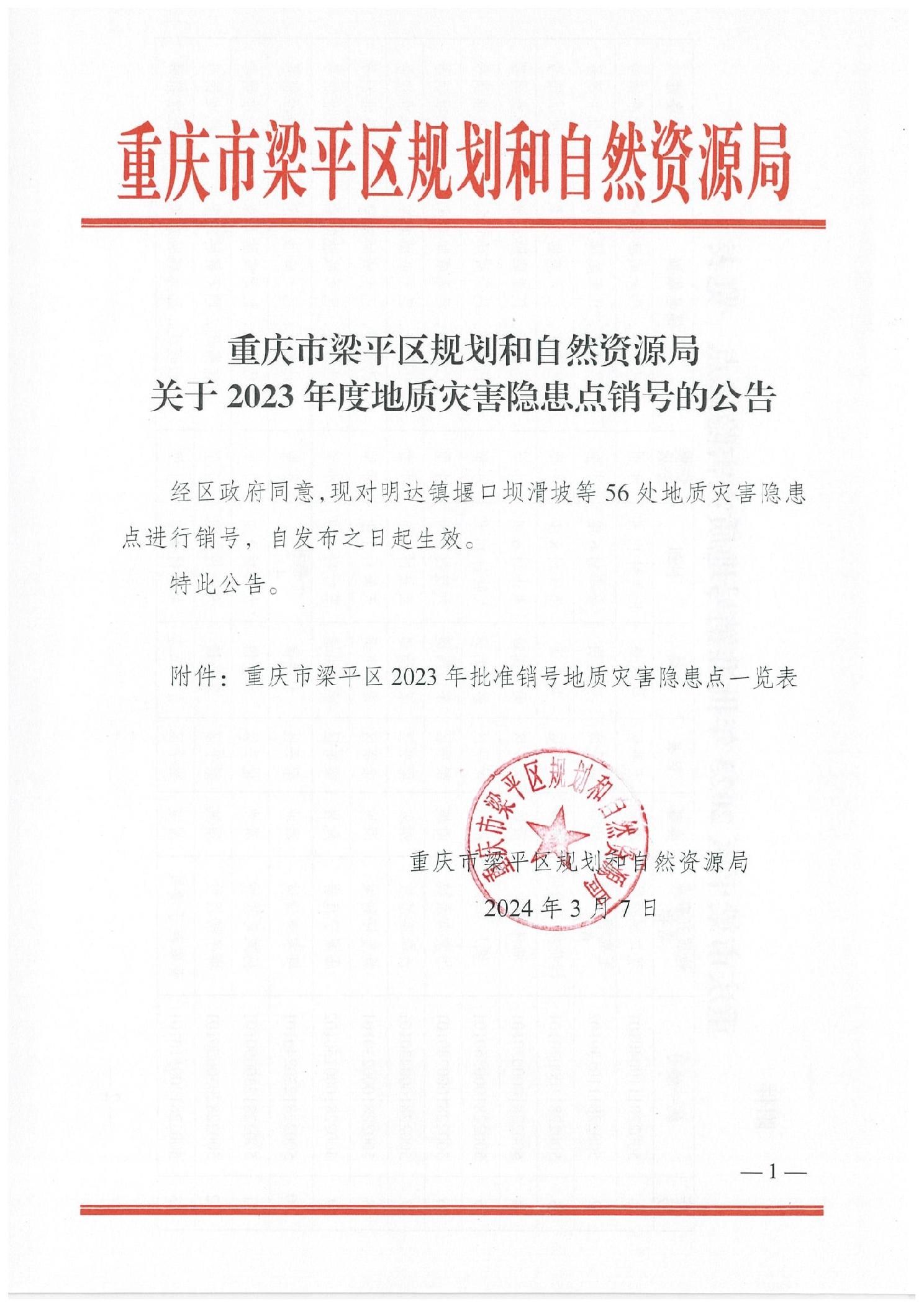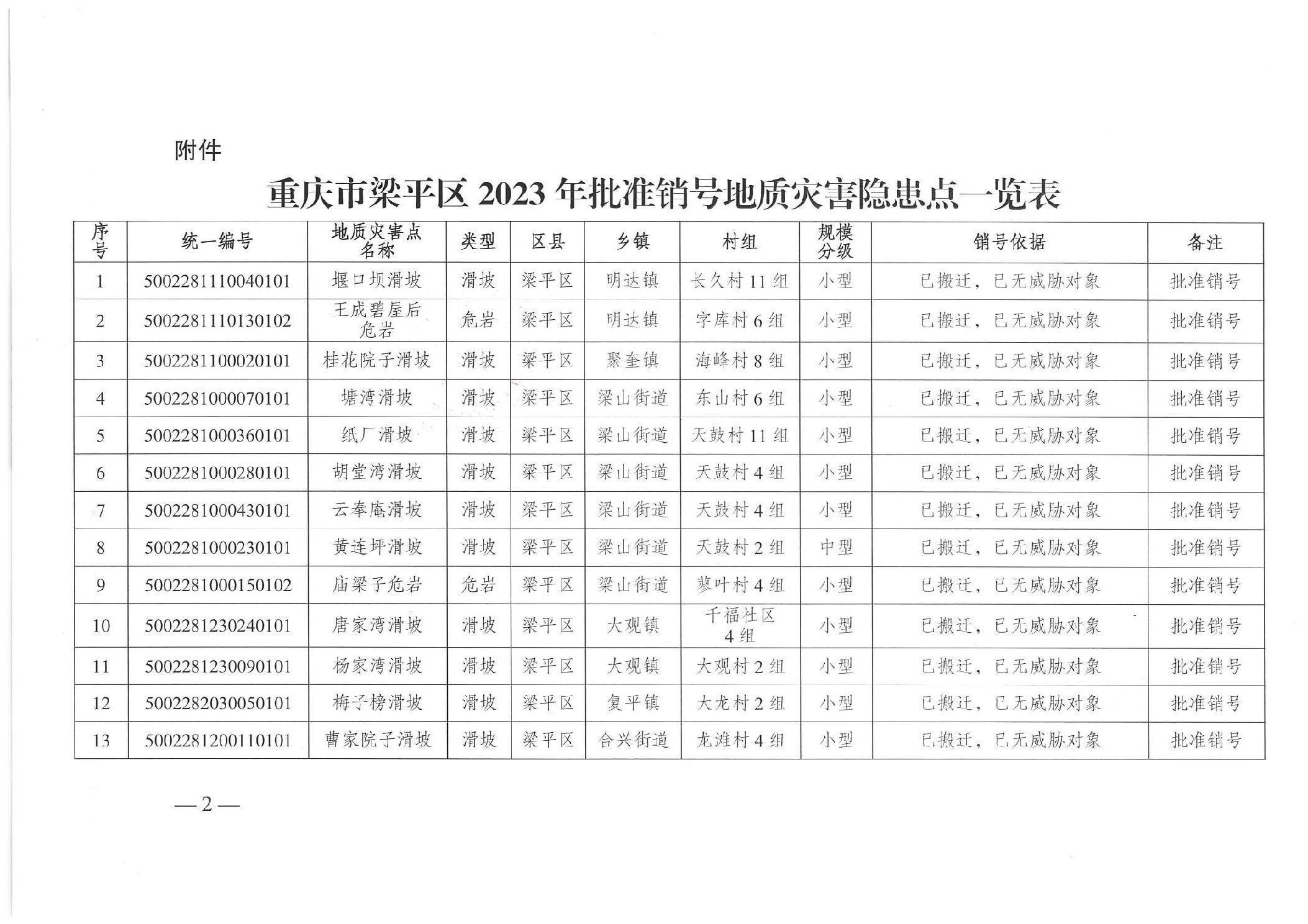重慶市梁平區規劃和自然資源局關于2023年度地質災害隱患點銷號的公告