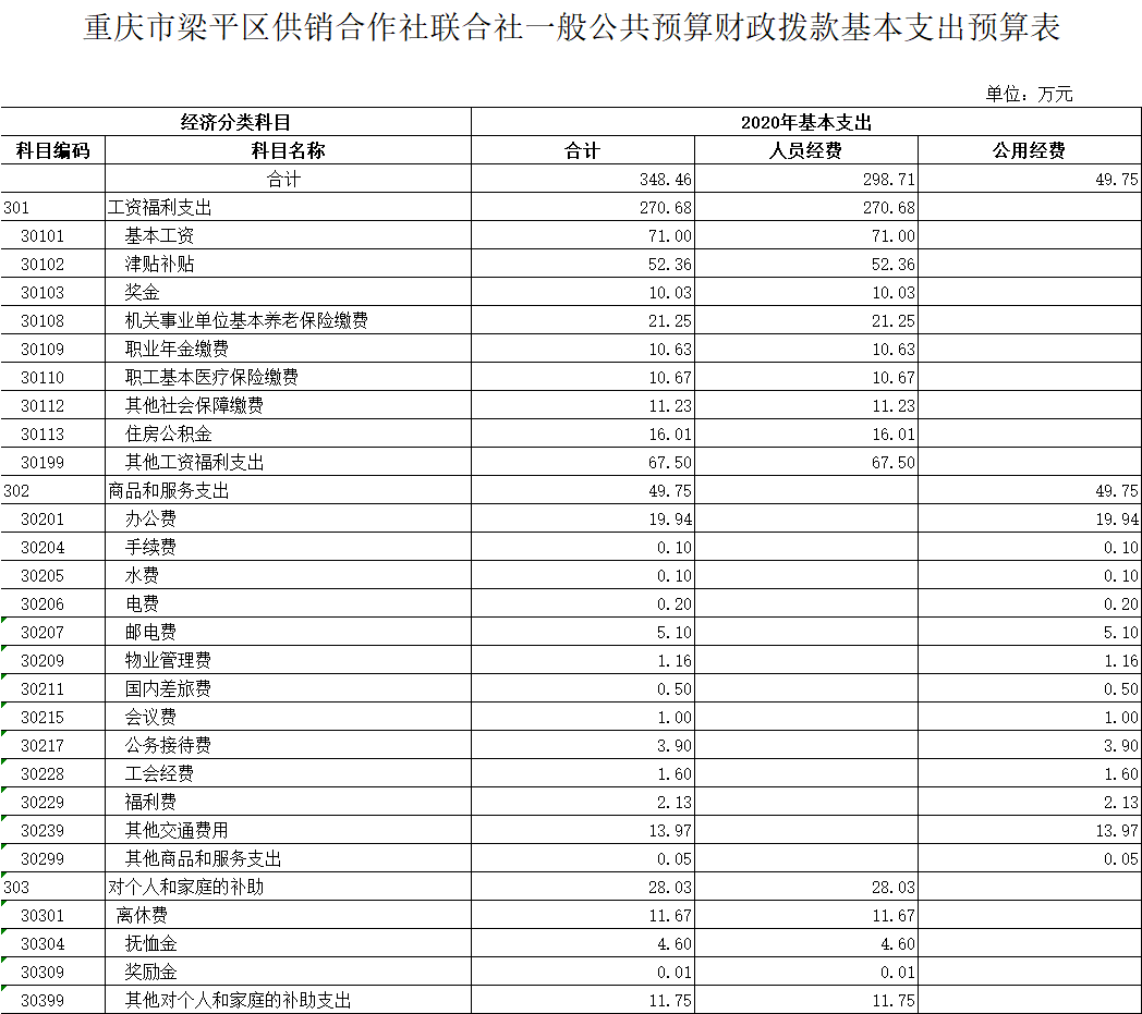 | 標題 | 重慶市梁平區(qū)供銷合作社聯(lián)合社2020年部門預算情況說明 | ||
