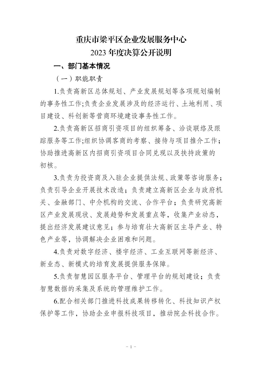 | 標題 | 重慶市梁平區企業發展服務中心 2023年度決算公開說明 |
