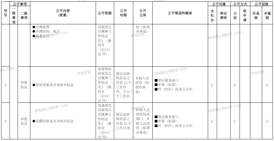 重慶市梁平區(qū)鄉(xiāng)鎮(zhèn)(街道)社會救助領(lǐng)域基層政務(wù)公開標準目錄