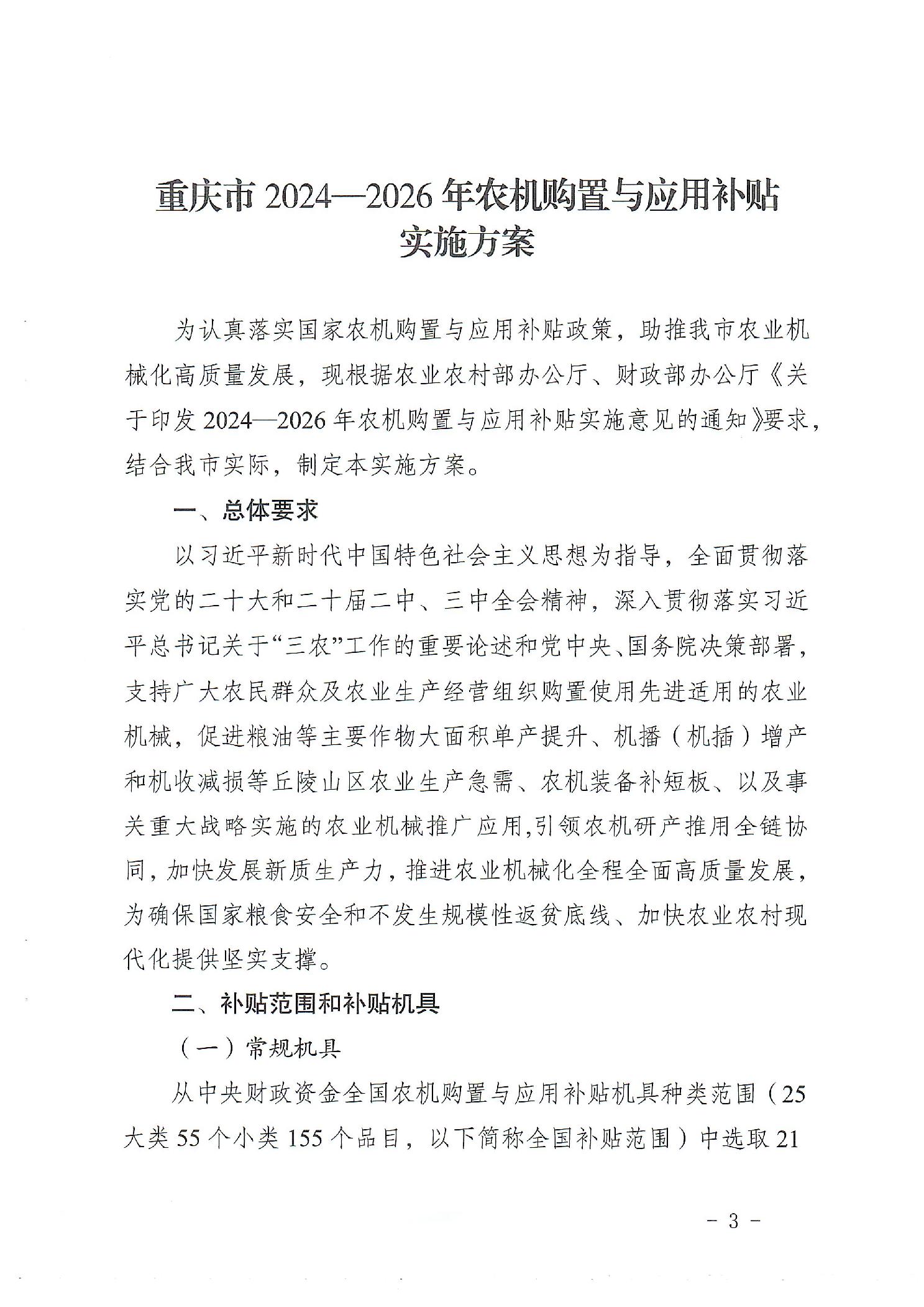 標題 重慶市2024-2026年農機購置與應用補貼實施方案