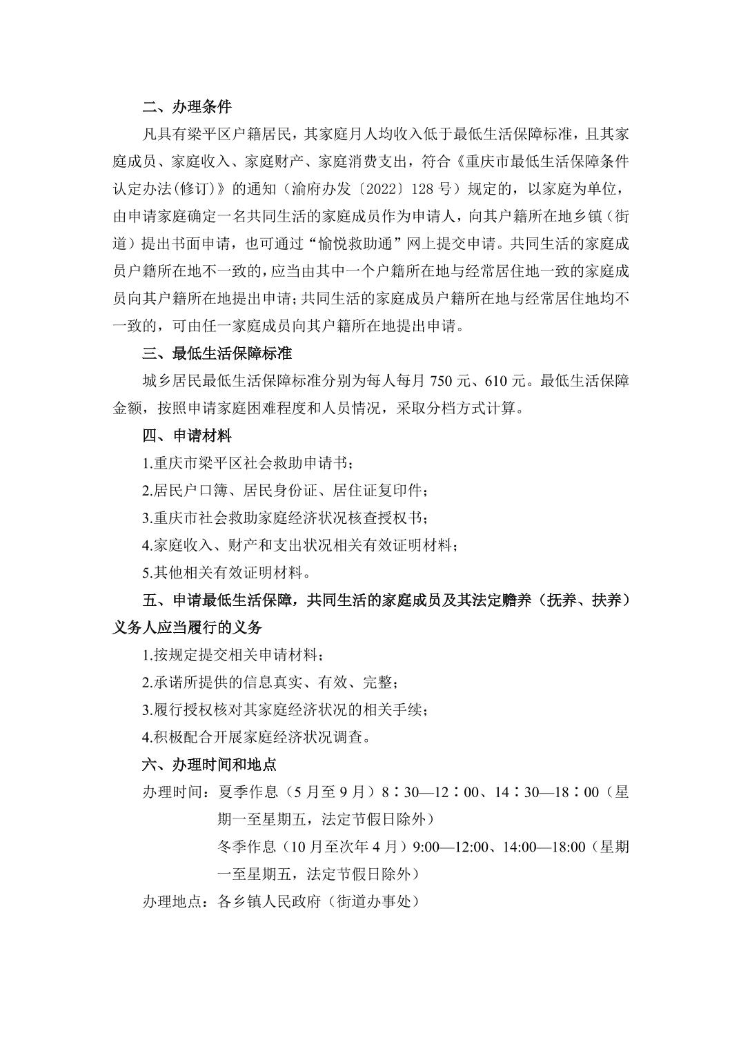 重慶市梁平區城鄉居民最低生活保障申請辦事指南