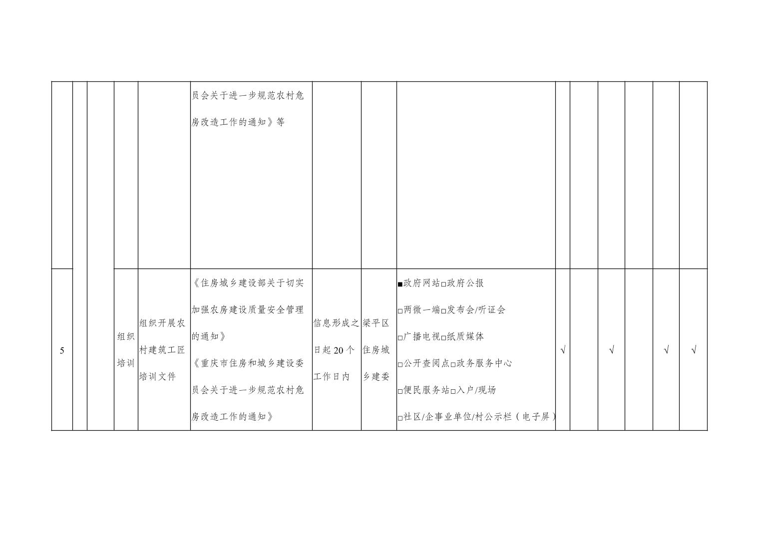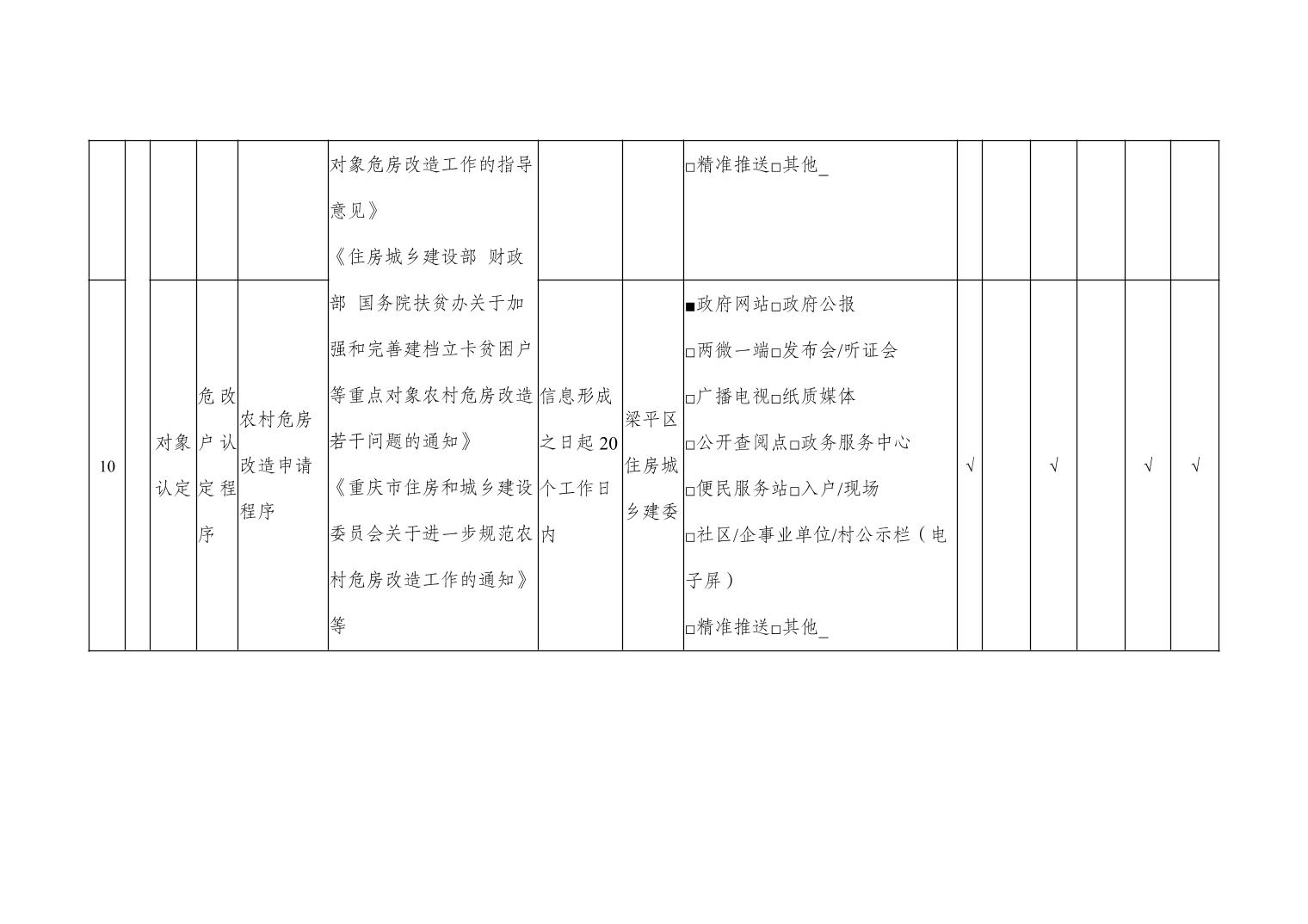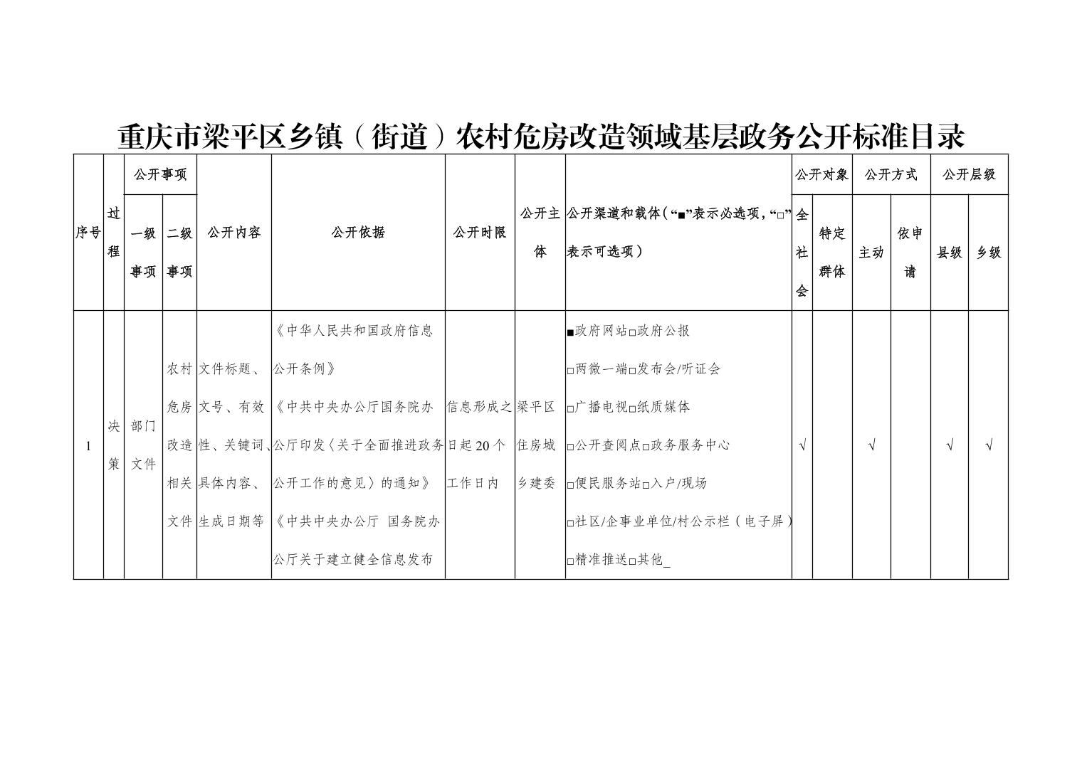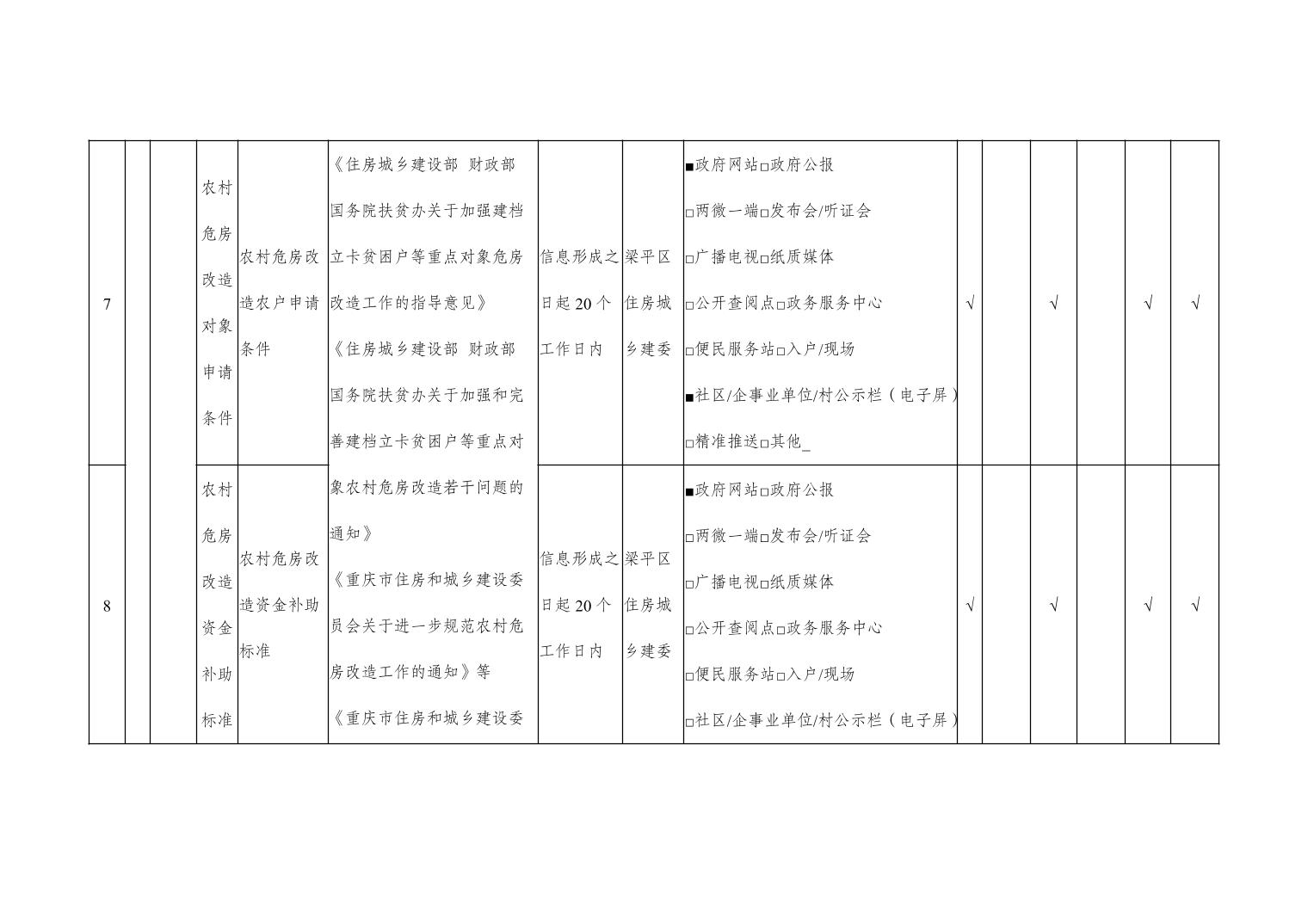 重慶市梁平區回龍鎮農村危房改造領域基層政務公開標準目錄(2025版)