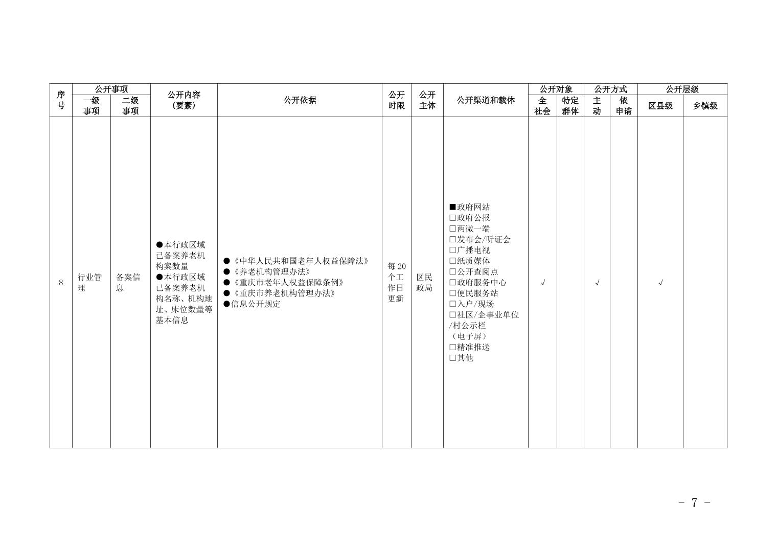 重慶市梁平區養老服務領域基層政務公開標準目錄(2025年)