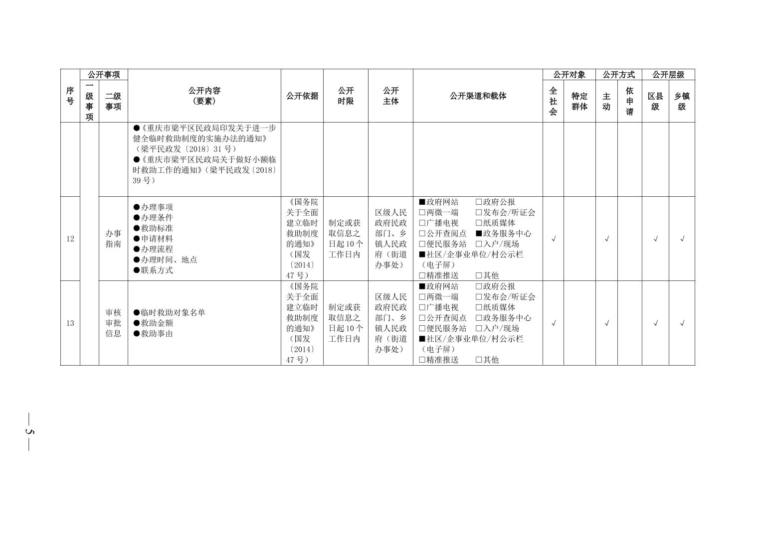 重慶市梁平區社會救助領域基層政務公開標準目錄(2025年)