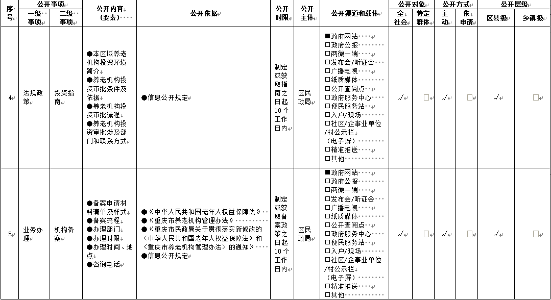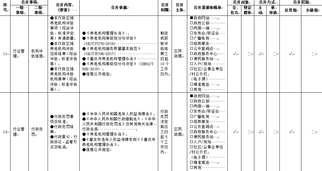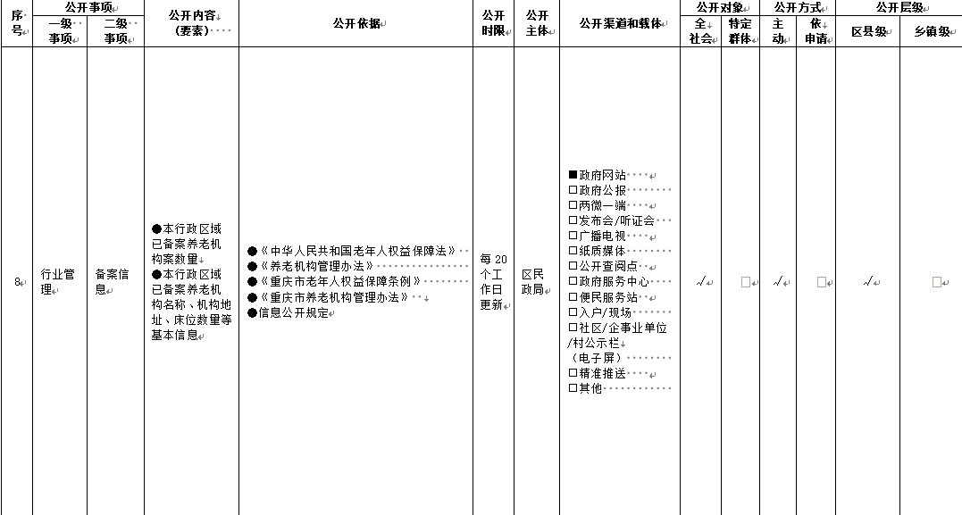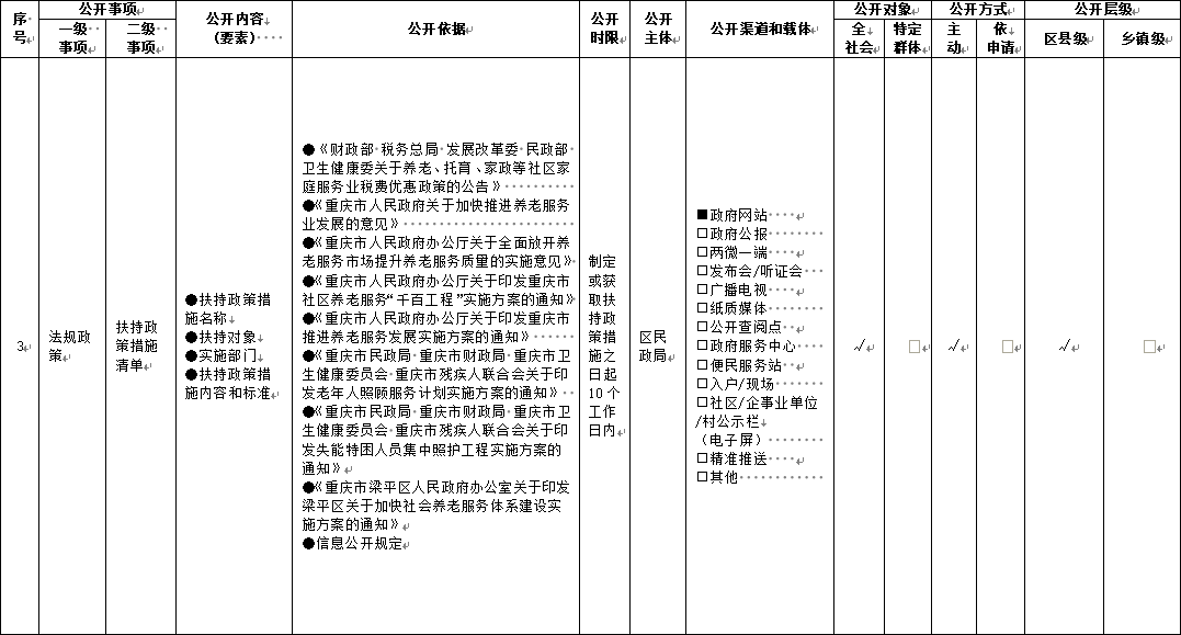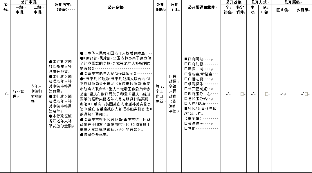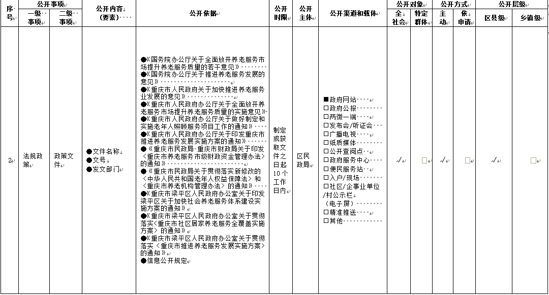重慶市梁平區鄉鎮(街道)養老服務領域基層政務公開標準目錄