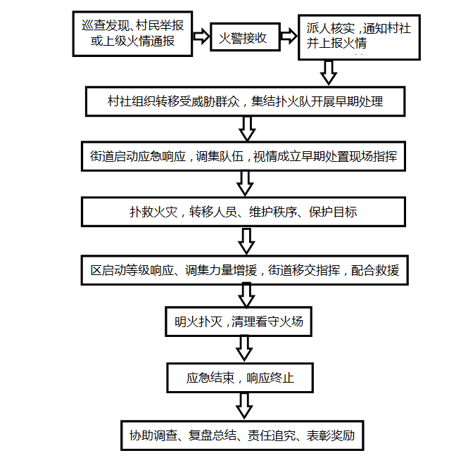 在森林火災全部撲滅、火場清理驗收合格經區森防指宣布終止應急響應后,街道森防指方可終止應急響應措施。