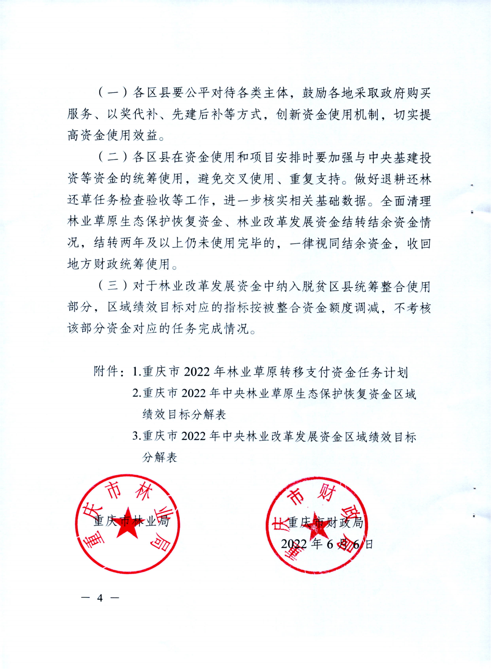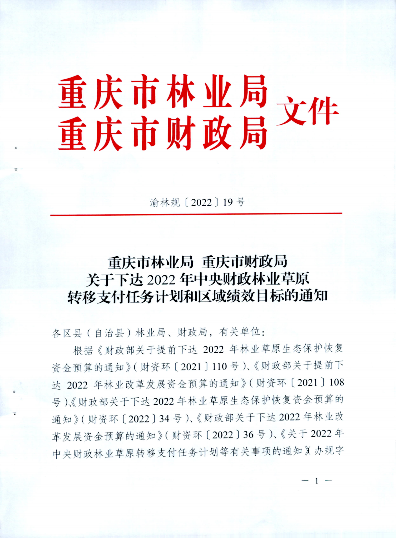 重慶市林業局 重慶市財政局關于下達2022年中央財政林業草原轉移支付任務計劃和區域績效目標的通知