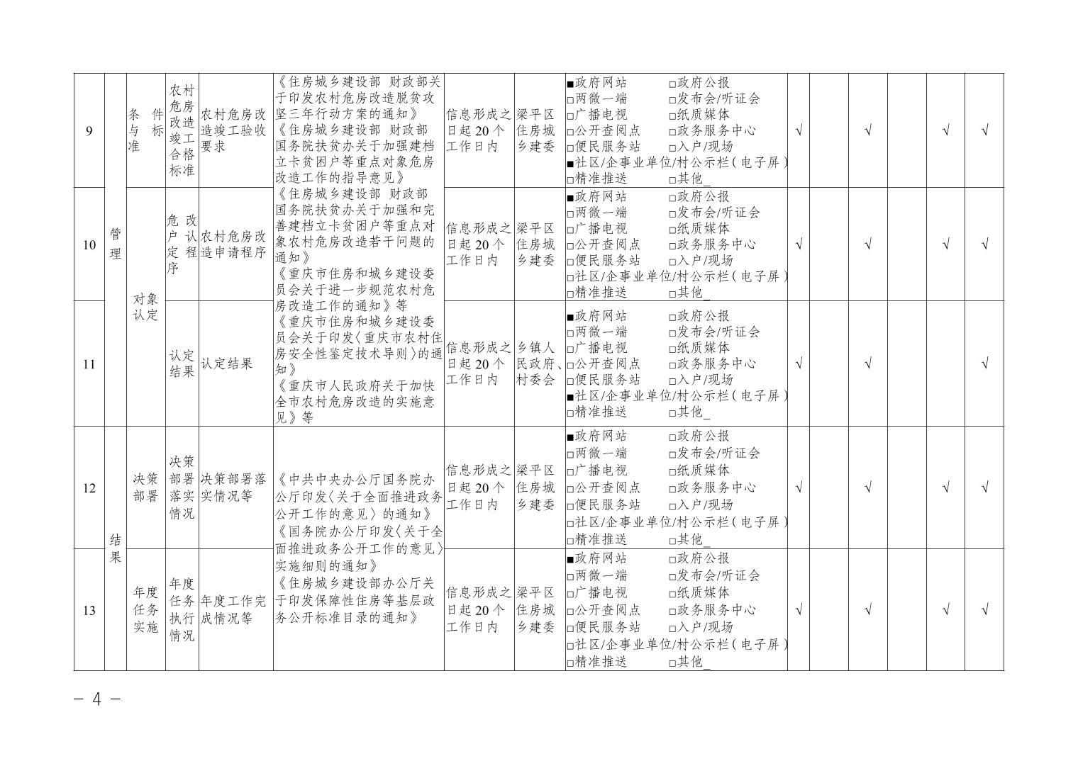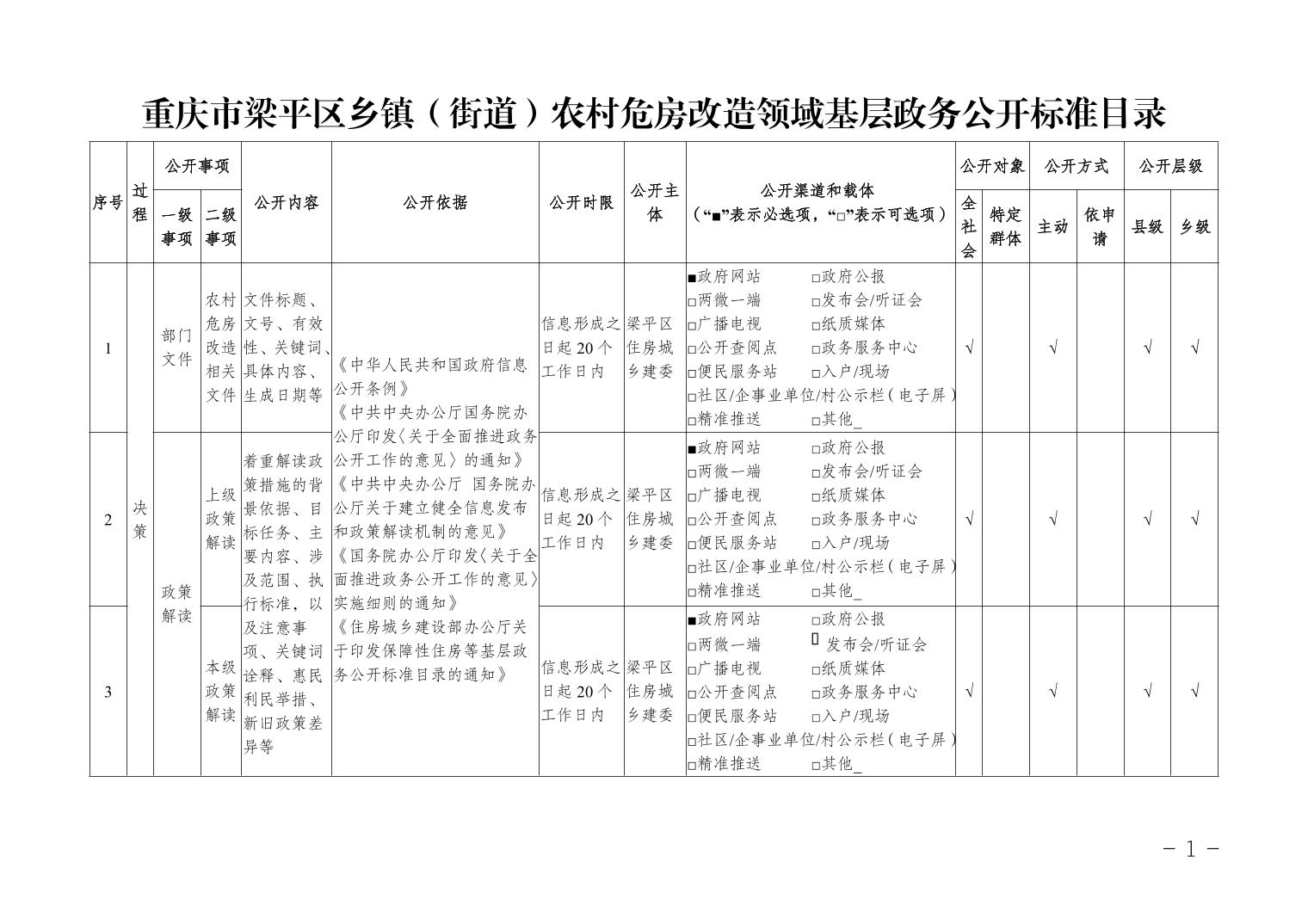 重慶市梁平區農村危房改造領域基層政務公開標準目錄