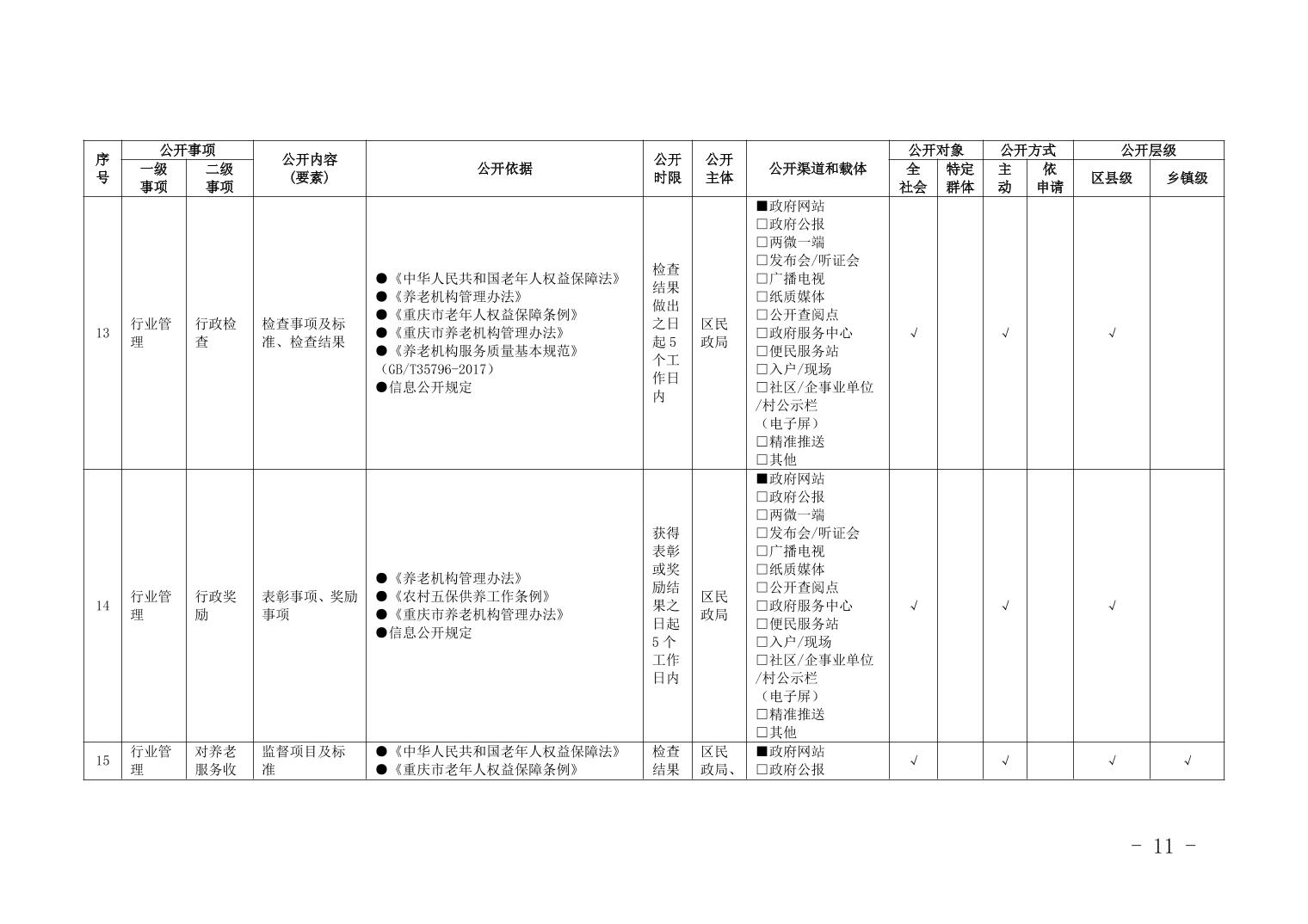 重慶市梁平區養老服務領域基層政務公開標準目錄(2025年)