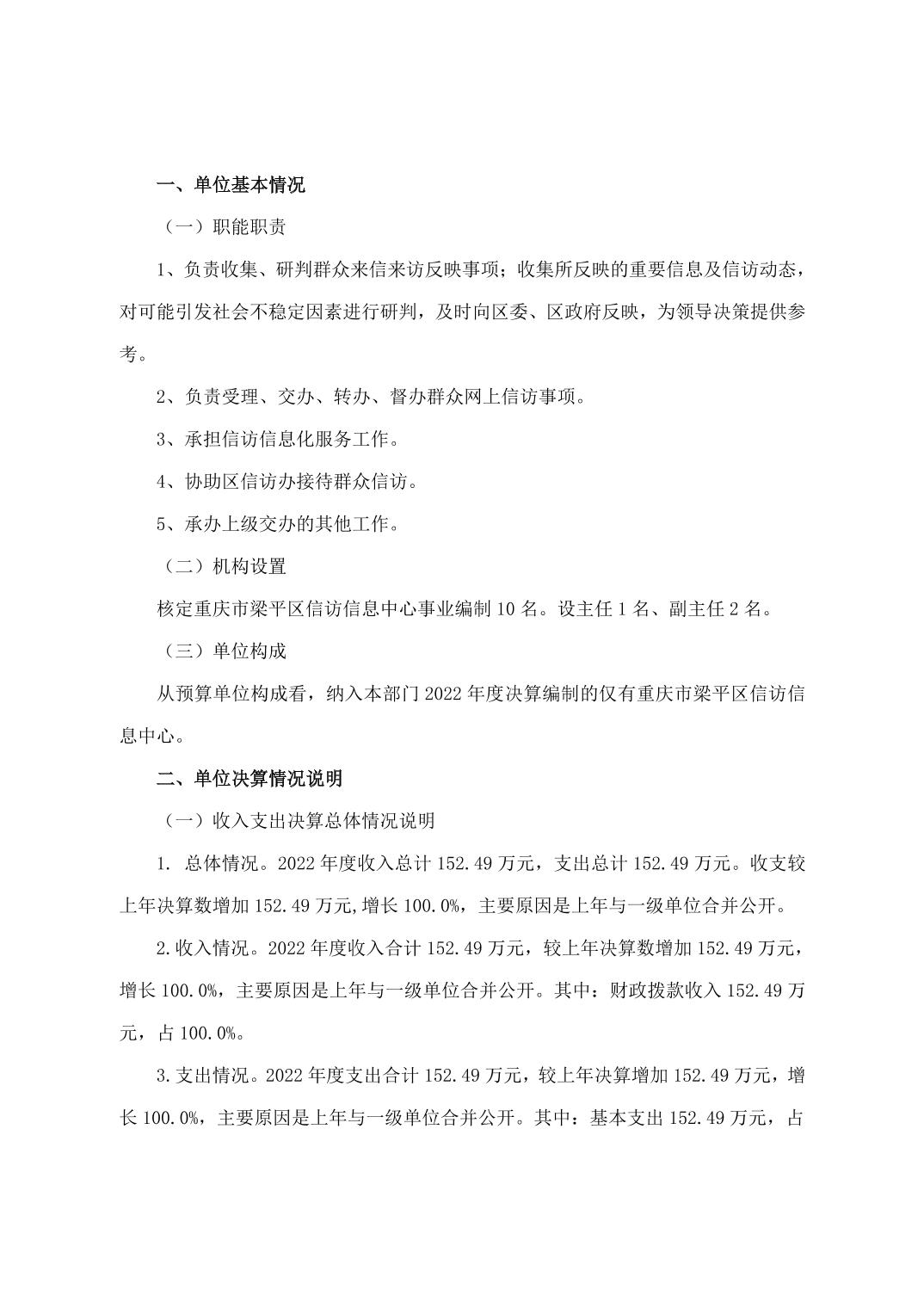 | 標題 | 重慶市梁平區信訪信息中心2022年度單位決算公開說明 |