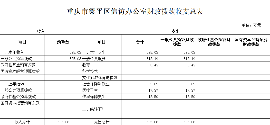2020年一般公共預算財政撥款收入585.08萬元,一般公共預算財政撥款支出585.08萬元,比2019年減少9.61萬元。其中:基本支出353.08萬元,比2019年減少24.61萬元,主要是2020年預算口徑是以2019年9月單位在職人員基數進行預算,當時我單位調出人員多,調進人員還沒到位。主要用于保障我單位在職人員工資福利及社會保險繳費,退休人員補助等,保障部門正常運轉的各項商品服務支出;項目支出232萬元,比2019年增加15萬元,主要按照渝信辦[2019]44號文件要求,將視頻信訪系統延伸到鄉鎮街道,新增建設資金15萬元。
